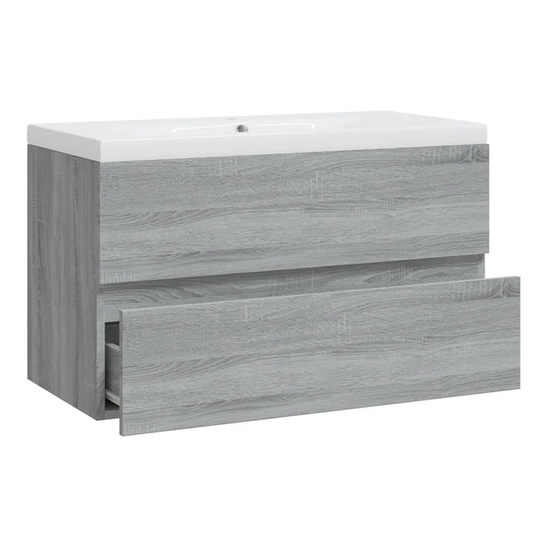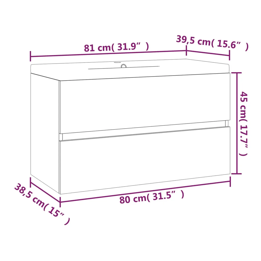 Ce meuble lavabo avec bassin intégré, doté d'un espace de rangement spacieux, est un supplément chic et intemporel à toute salle de bain ou salle d'eau. Matériau robuste : le bois d'ingénierie est d'une qualité exceptionnelle avec une surface lisse et présente également résistance, stabilité et résistance à l'humidité. Fabriqué en céramique, le lavabo intégré est considérablement facile à nettoyer.Grand espace de rangement : le tiroir spacieux de cette armoire de lavabo de salle de bain vous permet de ranger vos affaires.Design élégant : les lignes épurées et le design élégant font que ce meuble lavabo avec bassin s'intègre parfaitement dans votre salle de bain.Fonction de trop-plein : un trop-plein est également équipé pour vidanger l'eau lorsqu'il est trop plein. Remarque :Chaque produit est livré avec un manuel de montage dans la boîte pour un montage facile.Le robinet et le vidange ne sont pas inclus dans la livraison.Les vis et les chevilles pour l'intérieur du mur ne sont pas incluses. Recherchez et utilisez des vis et des chevilles adaptées à vos murs. Si vous n'êtes pas sûr, demandez conseil à un professionnel. Lisez et suivez attentivement chaque étape des instructions.