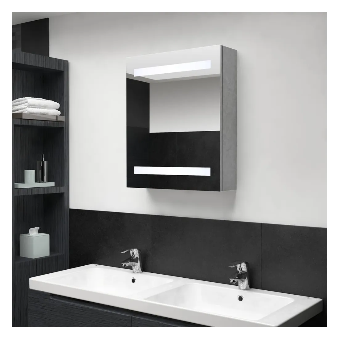 vidaXLIntroduisez une esthétique agréable dans votre salle de bain avec cette armoire à miroir à LED ! Cette armoire à miroir murale à LED ajoute une touche de style contemporain et une lumière douce et éclairante à toute pièce ! Cette armoire murale est fabriquée en panneaux MDF avec une finition mélaminée, garantissant une utilisation à long terme. Grâce aux deux bandes lumineuses à LED écoénergétiques, vous pouvez vous voir sous la lumière la plus pure pour le maquillage, les soins de la peau et les soins de la peau. Elle illumine votre pièce, votre visage et votre sourire. À l’intérieur, vous trouverez 3 étagères offrant un espace de rangement suffisant pour tous vos articles de toilette et accessoires de beauté. Vous pouvez facilement allumer/éteindre la lumière avec le bouton au fond. Élégant et fonctionnel, ce meuble saura sûrement rendre le design de votre pièce à l’origine exceptionnel ! Remarque :Ce produit est doté d'un connecteur USB, mais la source d'alimentation certifiée de USB 5V n'est pas incluse.