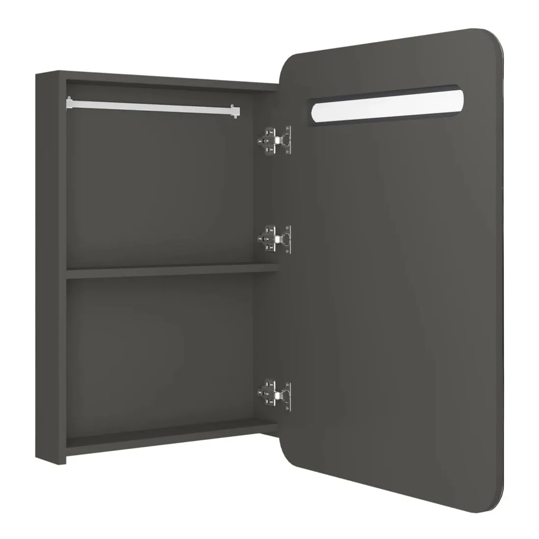 vidaXLIntroduisez une esthétique agréable dans votre salle de bain avec notre armoire à miroir de courtoisie LED ! Notre armoire murale à LED ajoute une touche de style contemporain et une lumière douce et éclairante à toute pièce ! Elle est faite de panneaux MDF de qualité avec une finition en mélamine, garantissant une utilisation à long terme. Avec tube LED intégré, vous pouvez vous voir dans la lumière la plus vraie pour l'application de maquillage, de toilettage et de soins de la peau et il peut illuminer votre chambre, votre visage et votre sourire. De plus, deux étagères à l'intérieur de l'armoire offrent un rangement supplémentaire dans la salle de bain. Elles pourront facilement accueillir vos articles de toilette essentiels et articles de bain tels que savons, shampoing, dentifrice, etc. Élégant et fonctionnel, ce meuble rendra sûrement la conception de votre pièce à l'origine exceptionnelle ! Remarque :Ce produit est doté d'un connecteur USB, mais la source d'alimentation certifiée de USB 5V n'est pas incluse.