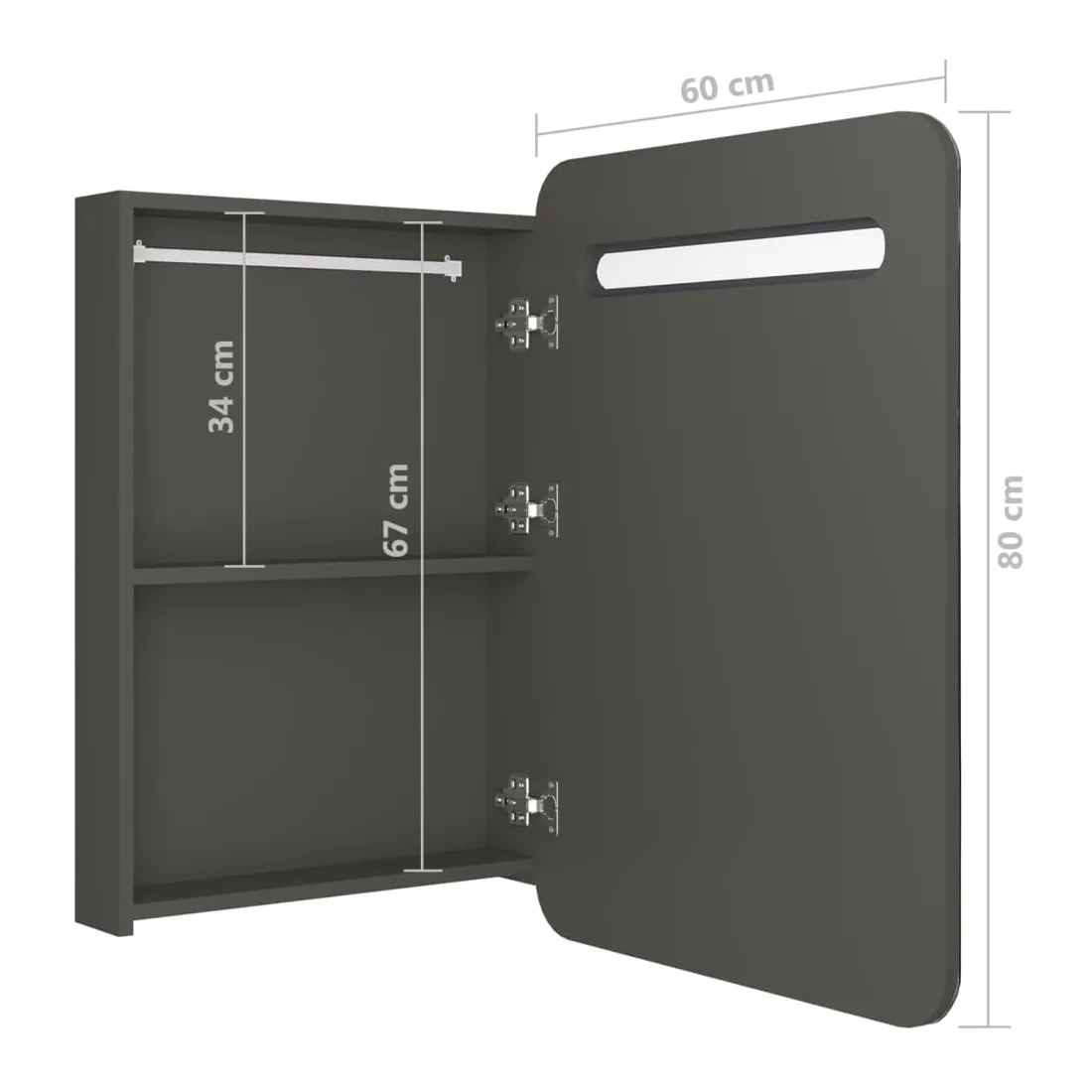 Armoire de salle de bain à miroir LED anthracite 60x11x80 cm