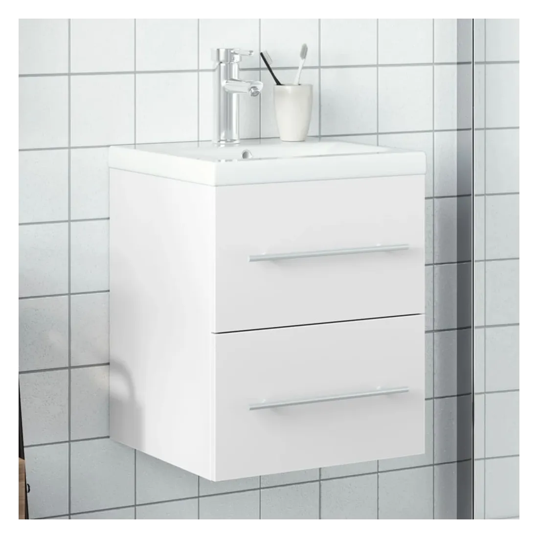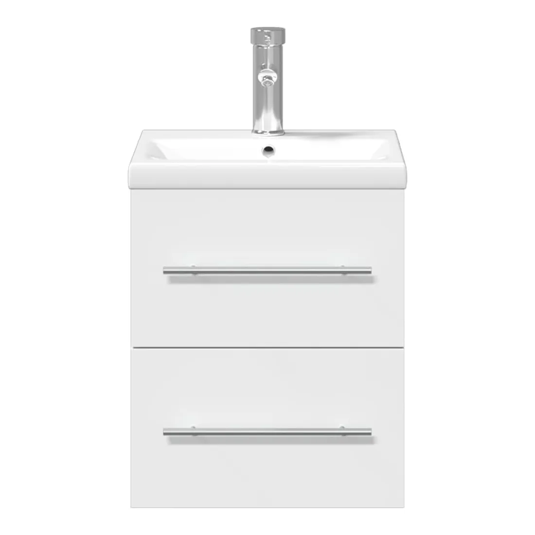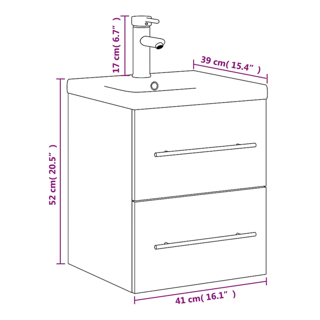 Cet élégant meuble-lavabo de salle de bain avec bassin intégré, avec un espace de rangement spacieux, est un excellent supplément à votre salle de bain, ce qui lui donne une apparence ordonnée et saisissante ! Matériau robuste : le meuble sous évier est fabriqué en bois d'ingénierie, qui est d'une qualité exceptionnelle avec une surface lisse et se caractérise également par sa solidité, stabilité et résistance à l'humidité.Grand espace de rangement : le meuble lavabo de salle de bain dispose de 1 tiroir, offrant un grand espace de rangement pour ranger des articles dans votre salle de bain.Fonction murale : l'armoire de salle de bain peut être fixée au mur pour ajouter de l'espace de stockage supplémentaire. De cette façon, vous pouvez maximiser votre espace au sol et garder la zone propre.Lavabo élégant : le lavabo de la salle de bain est fabriqué en céramique lisse, durable et facile à nettoyer. La surface vitrée apporte un design à la fois moderne et élégant.Trop-plein pratique : le lavabo est équipé d'une option anti-débordement qui permet d'évacuer l'eau lorsqu'il est trop plein. Bon à savoir :Les vis et les chevilles pour l'intérieur du mur ne sont pas incluses. Recherchez et utilisez des vis et des chevilles adaptées à vos murs. Si vous n'êtes pas sûr, demandez conseil à un professionnel. Lisez et suivez attentivement chaque étape des instructions.Le robinet et l'égouttoir à pousser avec fonction de trop-plein sont inclus.Le robinet est un robinet d'eau chaude et froide, et si vous avez besoin d'eau chaude, un chauffe-eau doit être connecté.