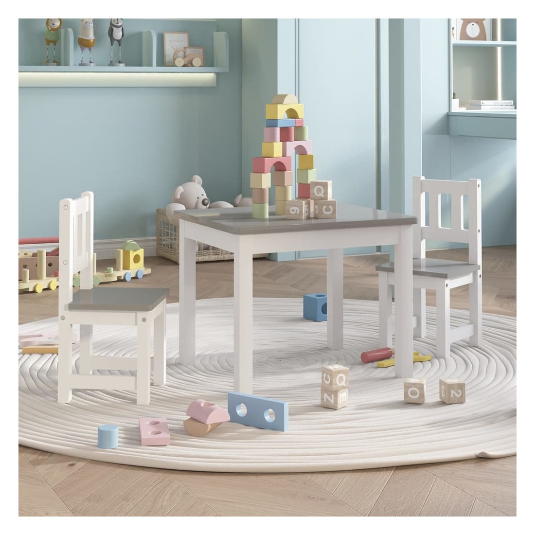 Avec cet ensemble de table et chaises, votre enfant et son ami peuvent s'asseoir à table et peindre, bricoler, manger et même jouer ensemble. Cet ensemble de table et de chaises est construit avec du MDF durable, ce qui le rend facile à nettoyer et à entretenir. La table peut être utilisée pour jouer à des puzzles, des jeux de société, faire des travaux manuels et des collations pour le dîner en plus de la lecture et de l'écriture de routine. Les bords et les coins de la table et des chaises sont arrondis, assurant la sécurité des enfants. C'est un cadre parfait pour vos enfants à utiliser à la maison, à l'école, à la maternelle, etc.