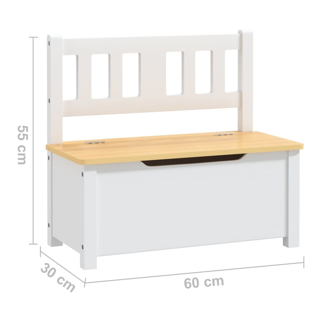 • Dimensions intérieures du banc : 54 x 25, 4 x 21,8 cm (L x l x H)