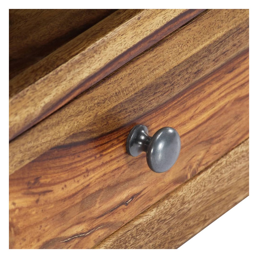 Avec un design à la fois tendance et pratique, ce meuble TV en bois massif deviendra certainement un point central de votre pièce. Ce meuble TV de style vintage en bois de Sesham solide apportera une touche intemporelle à votre maison. Le Sesham est un bois dur tropical connu pour ses grains riches et également connu sous le nom de bois de rose ou de palissandre. Chaque étape du processus est réalisée avec le plus grand soin, que ce soit le polissage, la peinture ou le laquage. Il dispose de 3 tiroirs pour ranger les bibelots et d'un compartiment ouvert pour ranger les appareils multimédia, les consoles de jeu et les revues. Remarque importante : les couleurs varient d'une pièce à l'autre, ce qui rend chacun de nos meubles TV unique. La livraison est aléatoire, ce qui garantit l'exclus