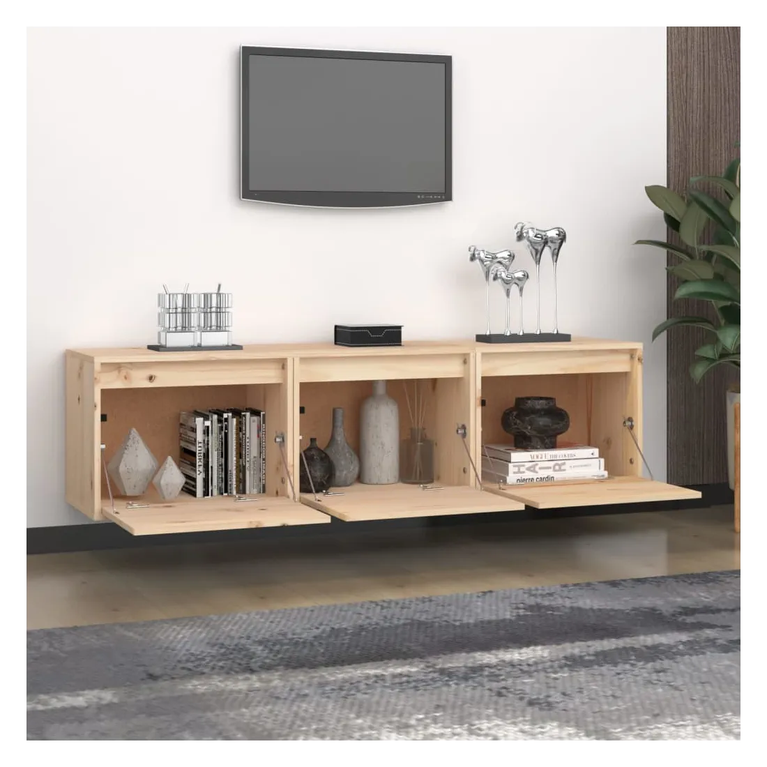 Ces meubles TV classiques sont conçus pour être le point de mire de votre pièce avec un design à la fois tendance et pratique. Ces armoires suspendues sont fabriquées en bois de pin massif, ce qui garantit leur solidité, durabilité et longévité. Les unités murales sont l'endroit idéal pour ranger des objets tels que des livres, des objets de collection, des bibelots, etc. Elles transforment un mur vide en une caractéristique de conception. De plus, les armoires flottantes sont faciles à nettoyer avec un chiffon humide. Veuillez noter : Les vis et les chevilles pour l'intérieur du mur ne sont pas incluses. Recherchez et utilisez des vis et des chevilles adaptées à vos murs. Si vous n'êtes pas sûr, demandez conseil à un professionnel. Lisez et suivez attentivement chaque étape de l'instr