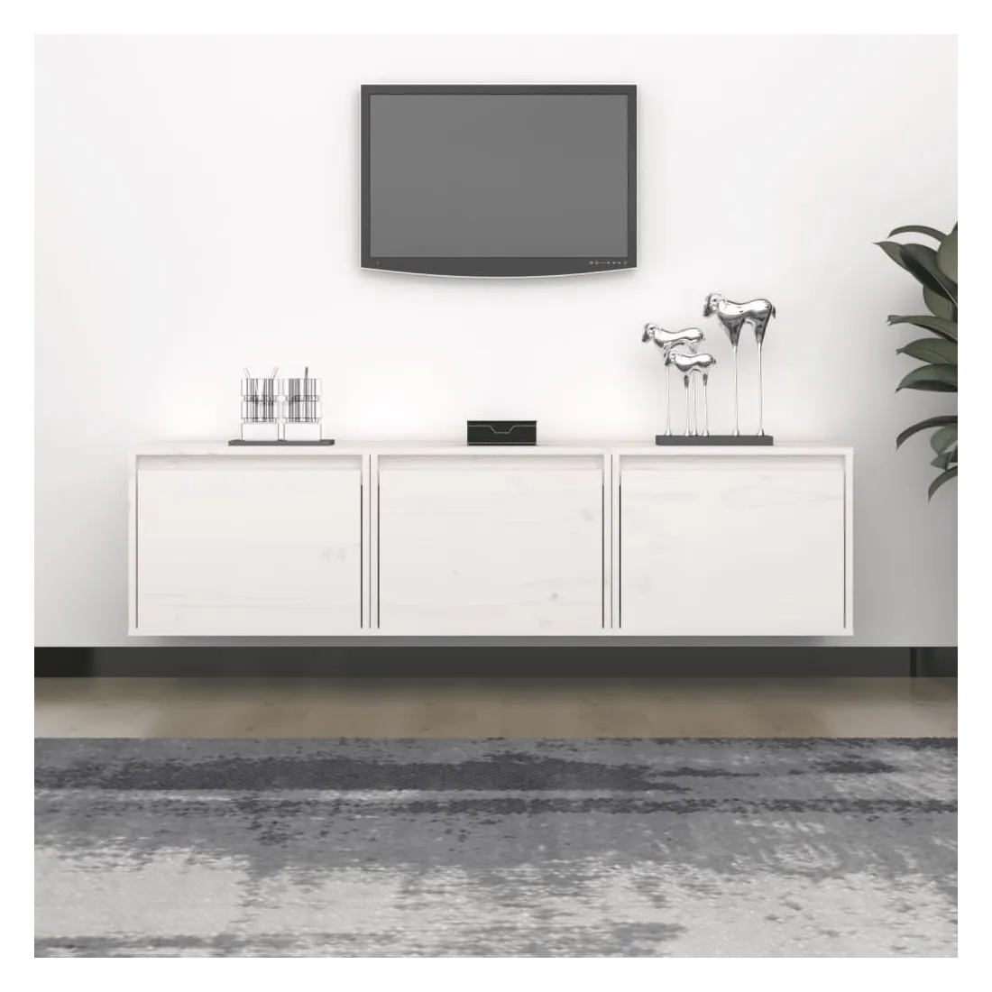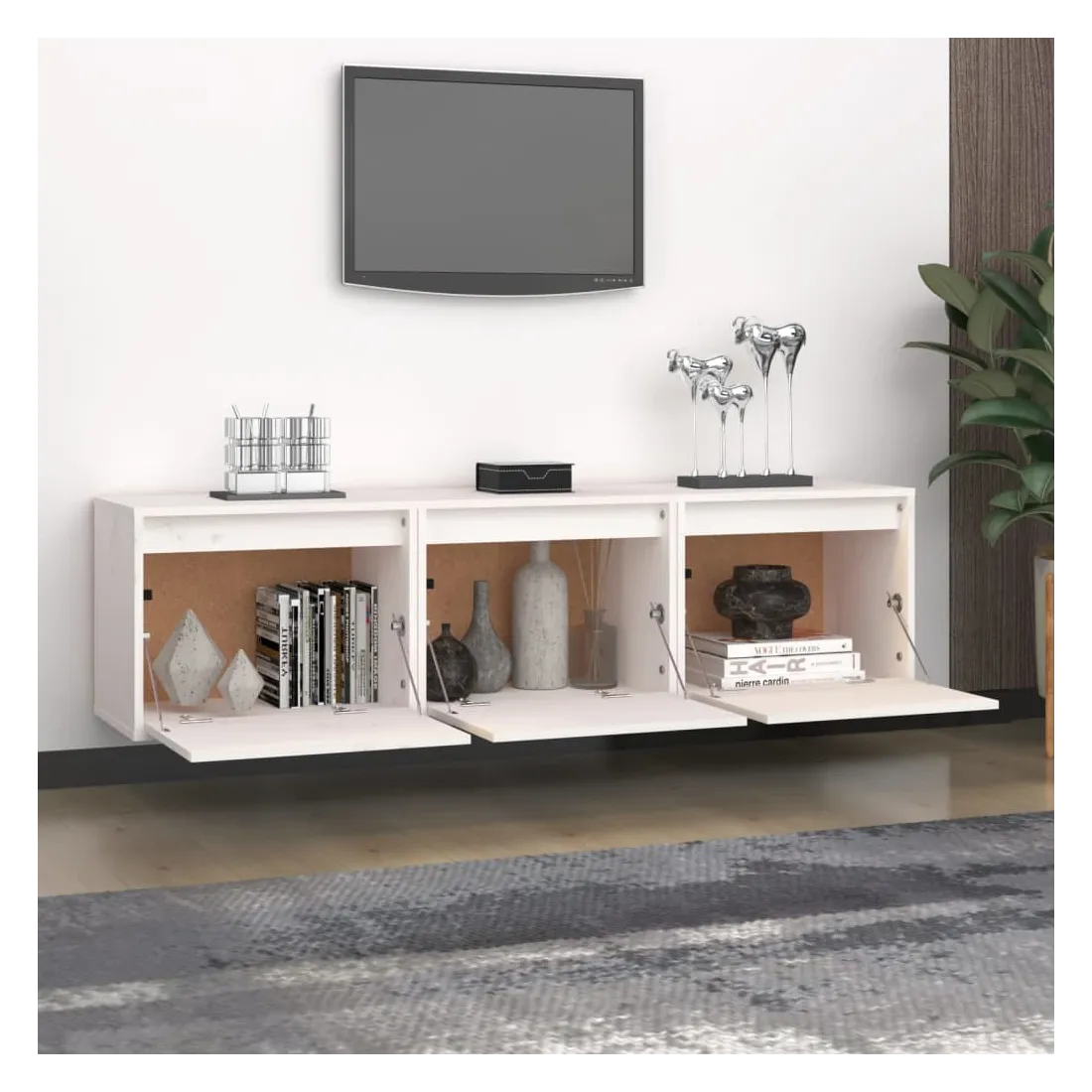 Ces meubles TV classiques sont conçus pour être le point de mire de votre pièce avec un design à la fois tendance et pratique. Ces armoires suspendues sont fabriquées en bois de pin massif, ce qui garantit leur solidité, durabilité et longévité. Les unités murales sont l'endroit idéal pour ranger des objets tels que des livres, des objets de collection, des bibelots, etc. Elles transforment un mur vide en une caractéristique de conception. De plus, les armoires flottantes sont faciles à nettoyer avec un chiffon humide. Veuillez noter : Les vis et les chevilles pour l'intérieur du mur ne sont pas incluses. Recherchez et utilisez des vis et des chevilles adaptées à vos murs. Si vous n'êtes pas sûr, demandez conseil à un professionnel. Lisez et suivez attentivement chaque étape de l'instruction.
