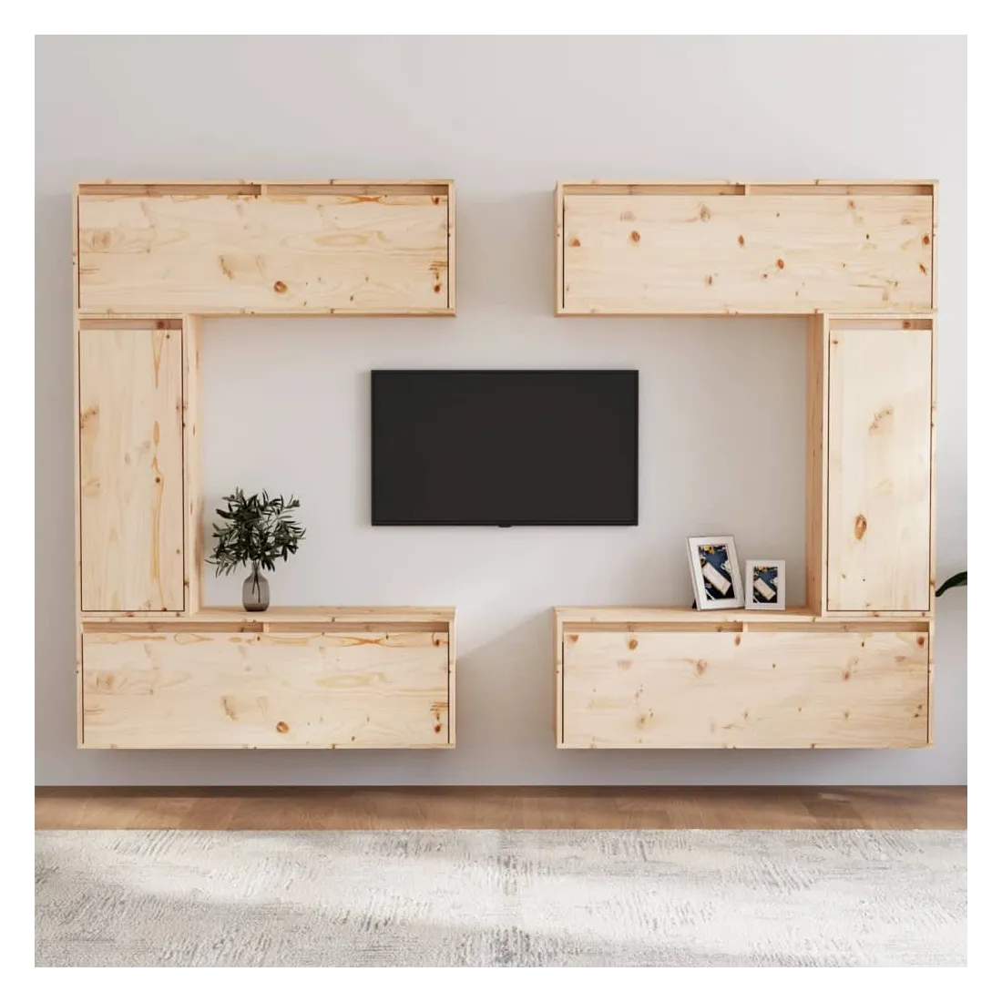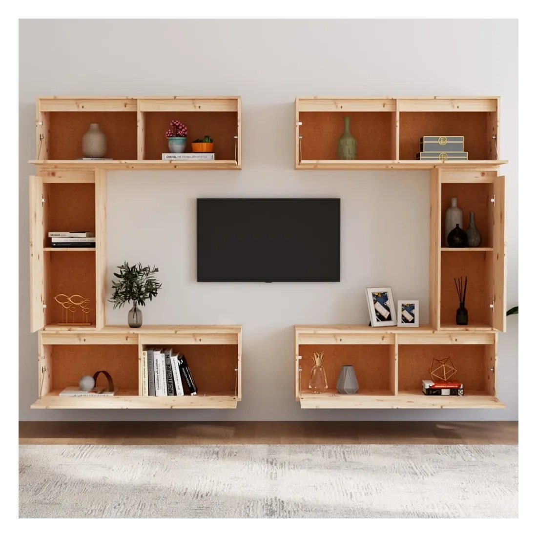 Ces meubles TV classiques sont conçus pour être le point de mire de votre pièce avec un design à la fois tendance et pratique. Ces armoires suspendues sont fabriquées en bois de pin massif, ce qui garantit leur solidité, durabilité et longévité. Les unités murales sont l'endroit idéal pour ranger des objets tels que des livres, des objets de collection, des bibelots, etc. Elles transforment un mur vide en une caractéristique de conception. De plus, les armoires flottantes sont faciles à nettoyer avec un chiffon humide. Veuillez noter : Les vis et les chevilles pour l'intérieur du mur ne sont pas incluses. Recherchez et utilisez des vis et des chevilles adaptées à vos murs. Si vous n'êtes pas sûr, demandez conseil à un professionnel. Lisez et suivez attentivement chaque étape de l'instruction.