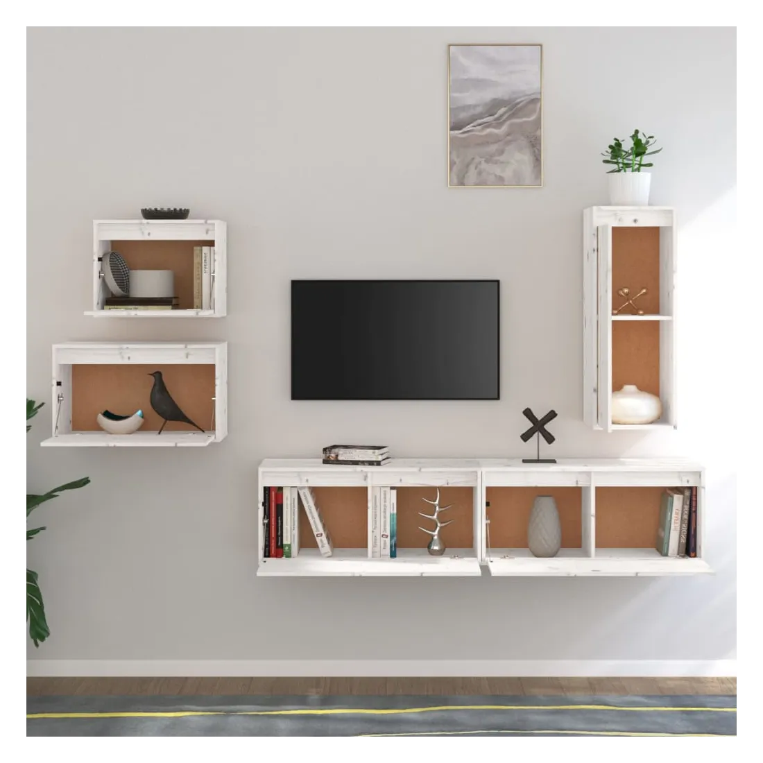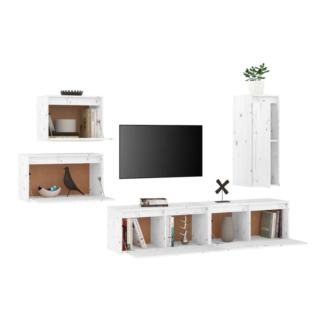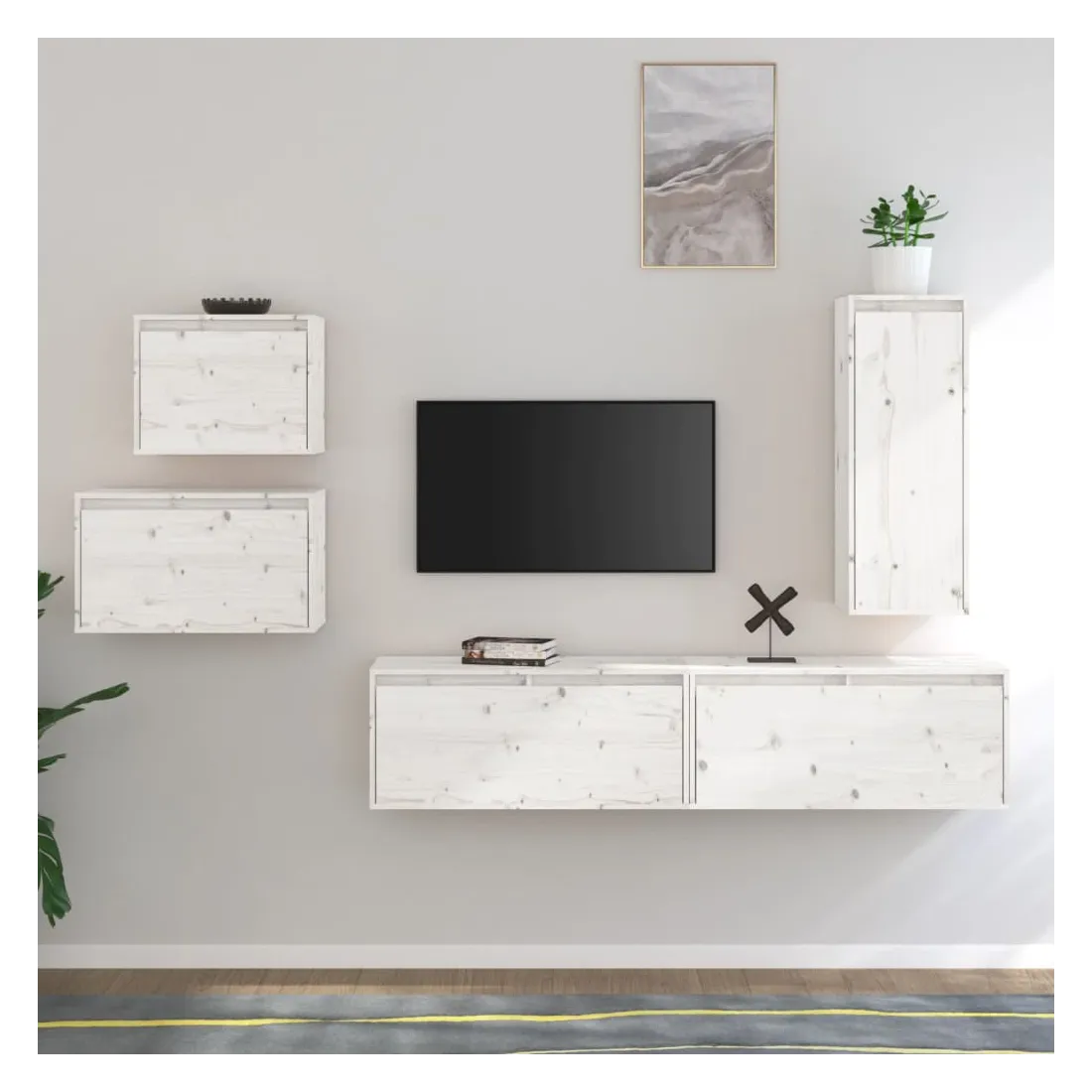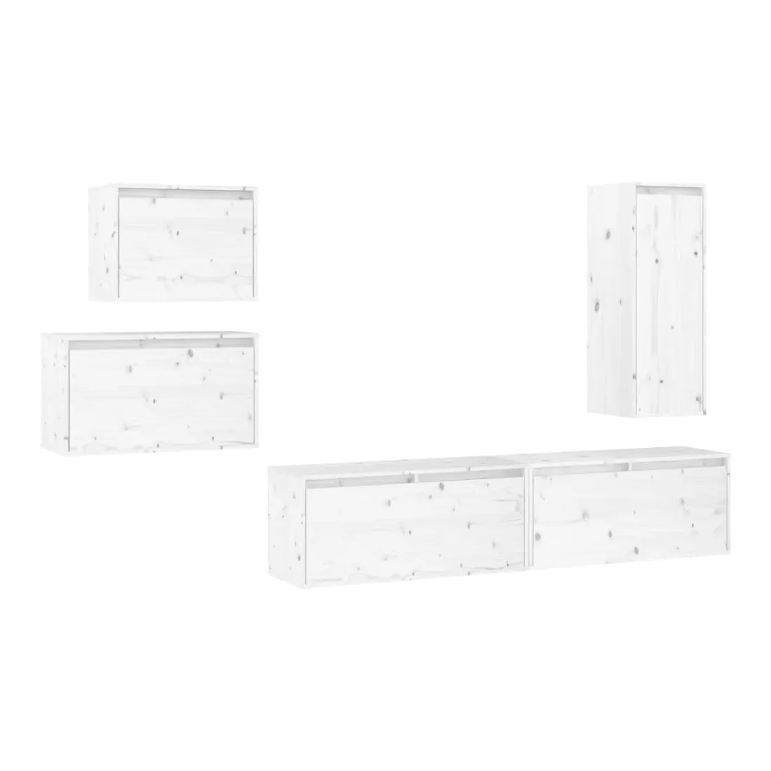 Meubles TV 5 pcs Blanc Bois massif de pin
