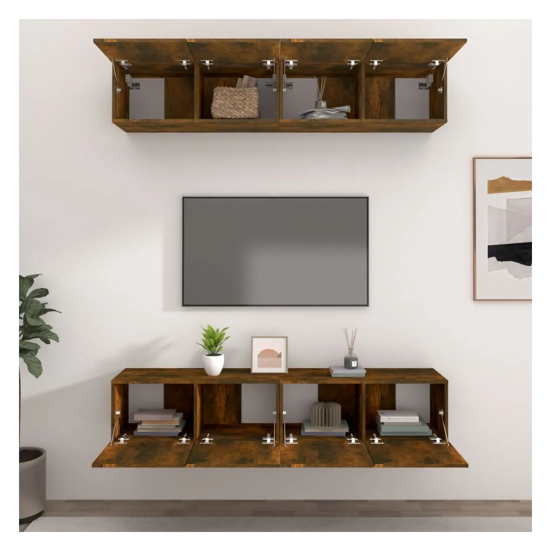 Ces meubles TV présentent un design élégant et classique. Ils peuvent être facilement fixés au mur, ce qui en font une extension décorative et pratique de votre décor. Bois d'ingénierie robuste : le bois d'ingénierie est d'une qualité exceptionnelle avec une surface lisse et présente également résistance, stabilité et résistance à l'humidité.Grand espace de rangement : chaque support TV dispose de 2 compartiments qui en font un endroit idéal pour ranger tous vos magazines, DVD ou autres objets.Design mural : le meuble TV ne prend pas de place au sol. Vous pouvez l'accrocher au mur facilement.Portes pratiques : les deux portes de l'armoire média gardent votre espace sans encombrement en cachant de petits articles essentiels derrière les portes. La porte dispose également d’un design déroulant, ce qui facilite l’obtention d’articles. Remarque :Les vis et les chevilles pour l'intérieur du mur ne sont pas incluses. Recherchez et utilisez des vis et des chevilles adaptées à vos murs. Si vous n'êtes pas sûr, demandez conseil à un professionnel. Lisez et suivez attentivement chaque étape des instructions.Chaque produit est livré avec un manuel de montage dans la boîte pour un montage facile.