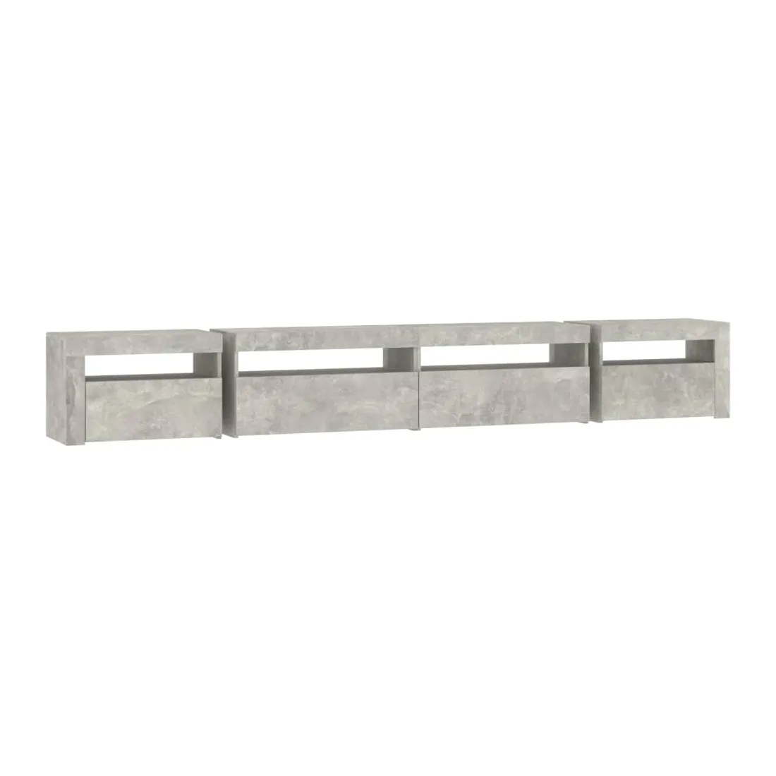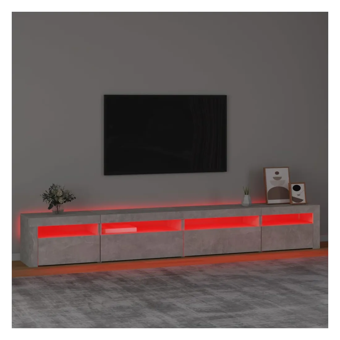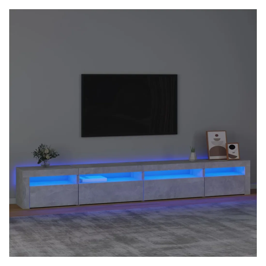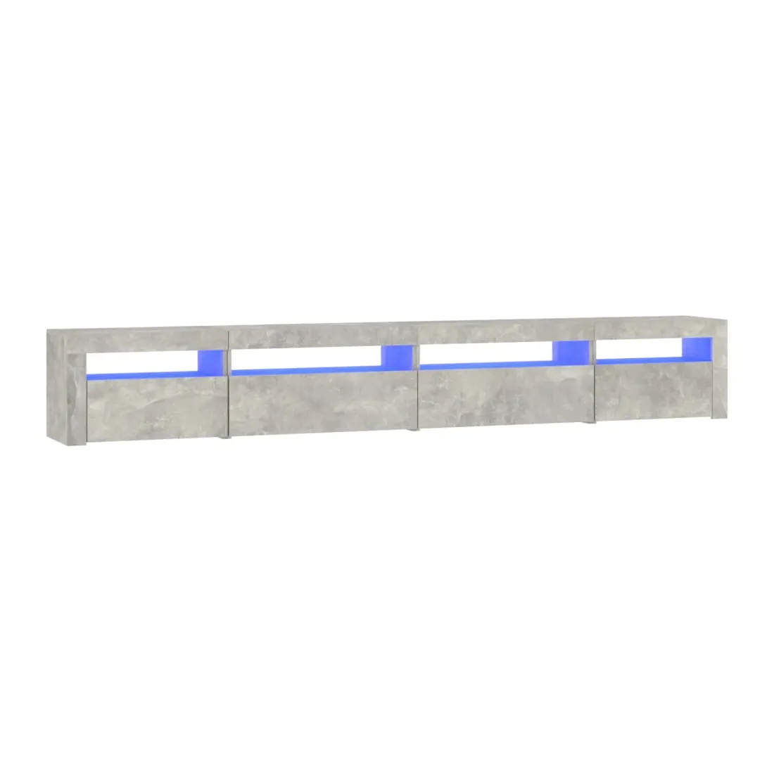 Avec un design à la fois tendance et pratique, ce meuble TV avec éclairage LED deviendra certainement un point central de votre pièce. Matériau pratique : le bois d'ingénierie est d'une qualité exceptionnelle avec une surface lisse et présente également résistance, stabilité et résistance à l'humidité. Lumières LED colorées : le meuble TV est doté de lumières LED RVB, qui ont différents menus pour changer la couleur des lumières et laisser la couleur s'ajuster automatiquement. Les lumières LED soulignent l'aspect moderne et contribuent à la sensation de tendance.Grand espace de rangement : le meuble TV offre un grand espace de rangement pour garder vos magazines, livres, télécommandes et autres petits objets bien organisés et à portée de main.Fonction d'affichage : le dessus robuste du meuble média est idéal pour exposer des objets décoratifs, des cadres photo et des plantes en pot. Remarque :Ce produit est doté d'un connecteur USB, mais la source d'alimentation certifiée de USB 5V n'est pas incluse.Chaque produit est livré avec un manuel de montage dans la boîte pour un montage facile.