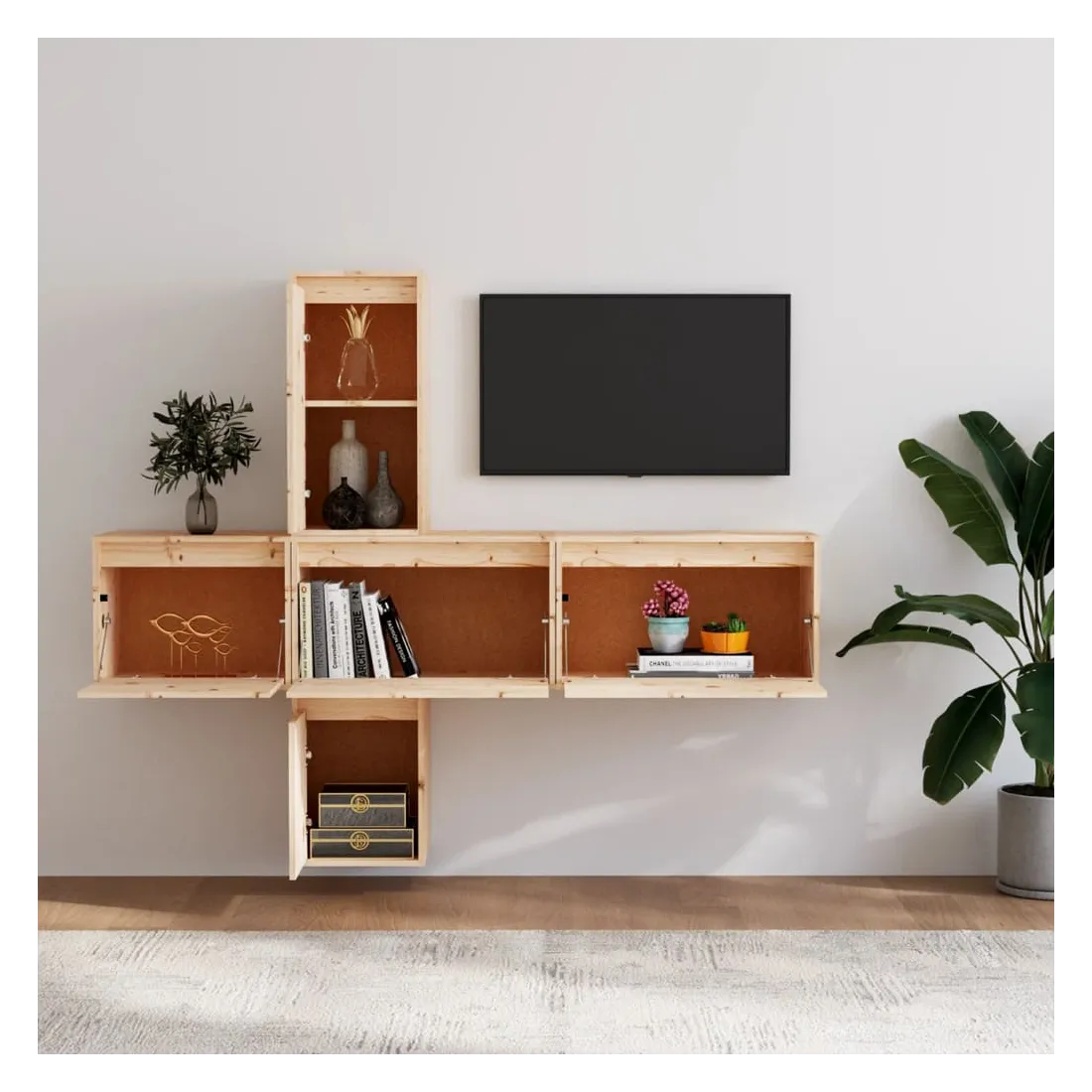 Ces meubles TV classiques sont conçus pour être le point de mire de votre pièce avec un design à la fois tendance et pratique. Ces armoires suspendues sont fabriquées en bois de pin massif, ce qui garantit leur solidité, durabilité et longévité. Les unités murales sont l'endroit idéal pour ranger des objets tels que des livres, des objets de collection, des bibelots, etc. Elles transforment un mur vide en une caractéristique de conception. De plus, les armoires flottantes sont faciles à nettoyer avec un chiffon humide. Veuillez noter : Les vis et les chevilles pour l'intérieur du mur ne sont pas incluses. Recherchez et utilisez des vis et des chevilles adaptées à vos murs. Si vous n'êtes pas sûr, demandez conseil à un professionnel. Lisez et suivez attentivement chaque étape de l'instruction.