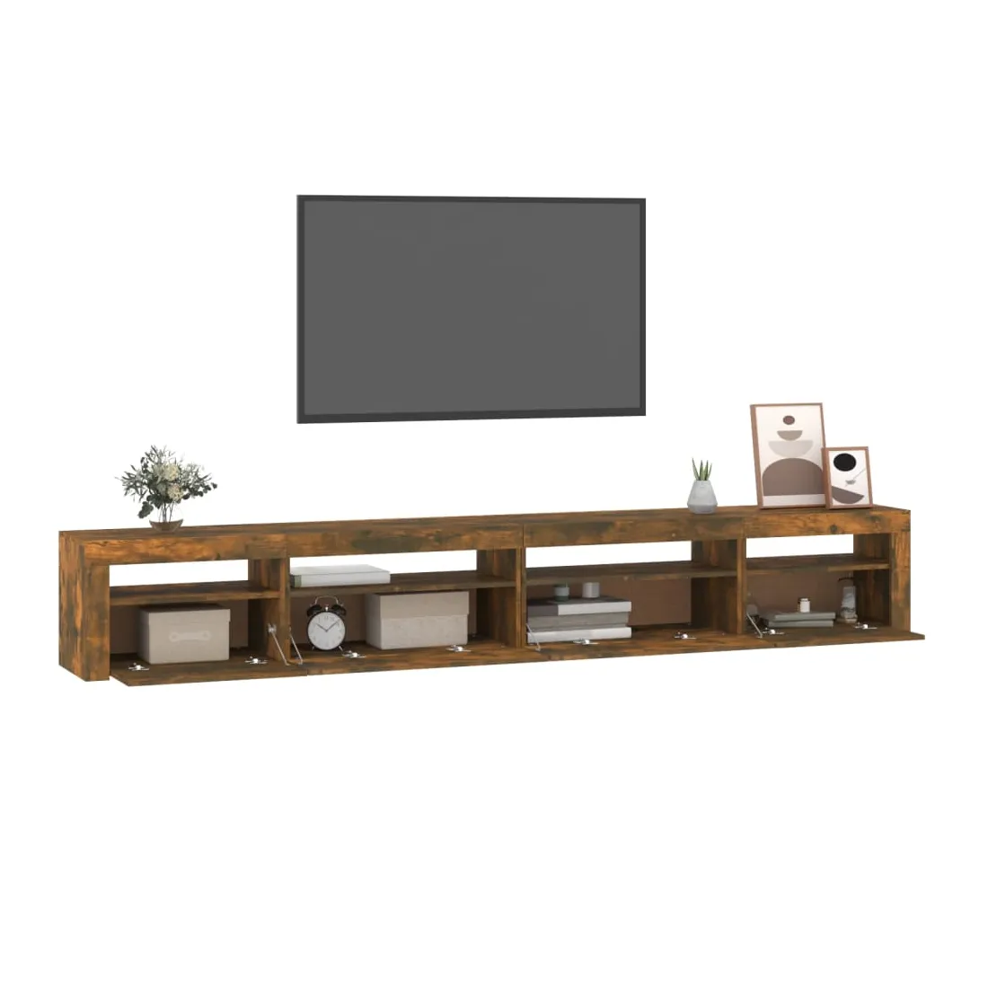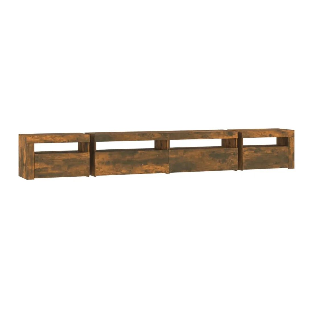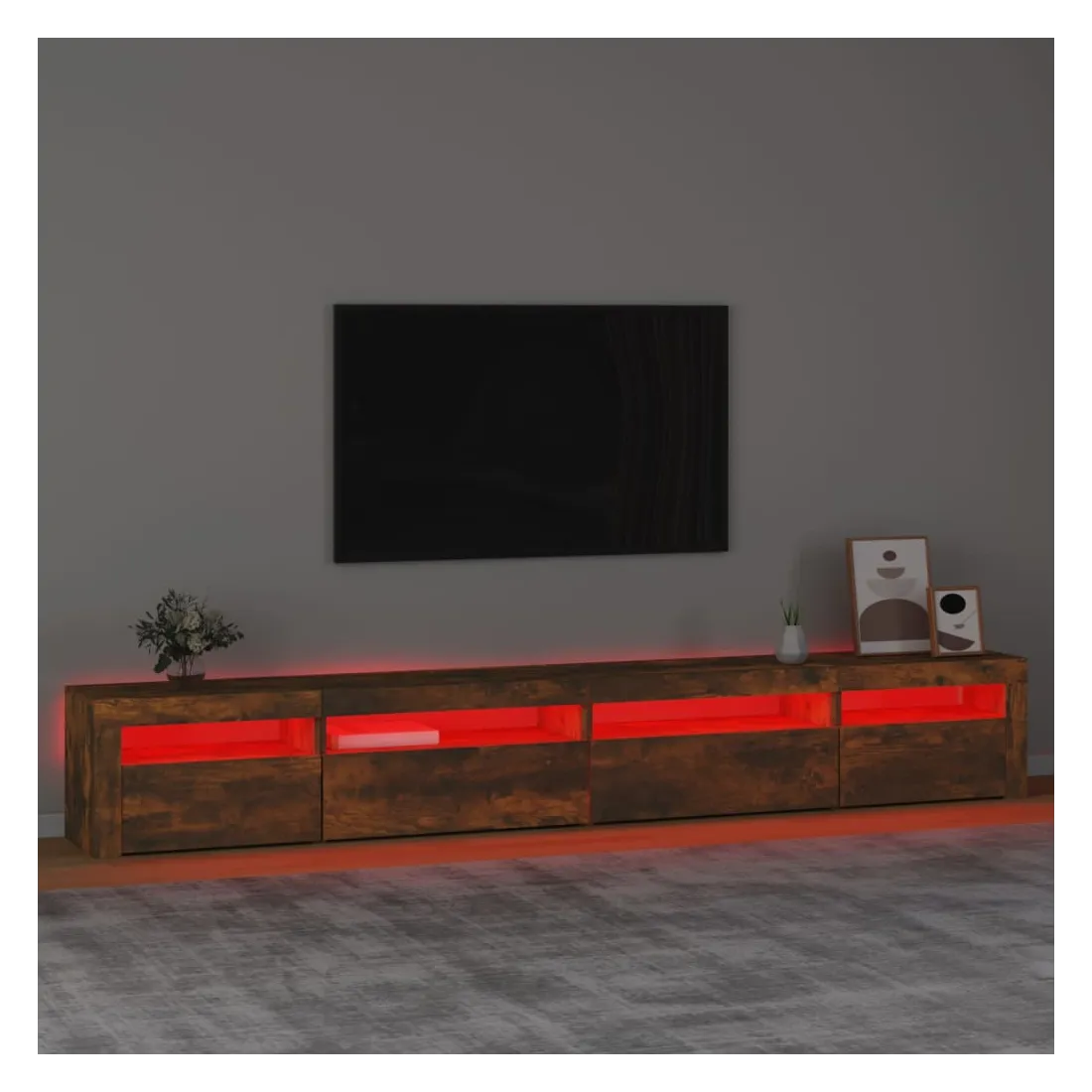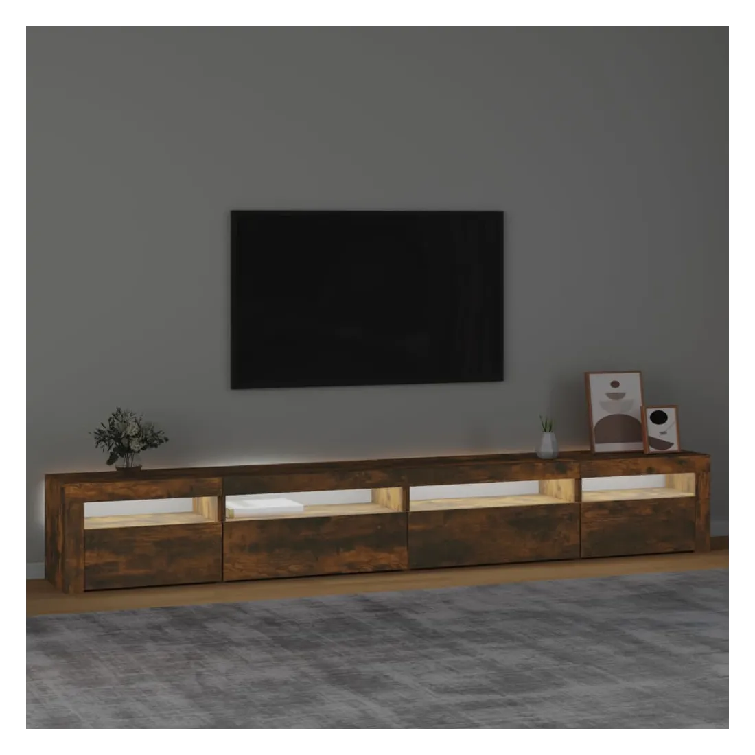 Avec un design à la fois tendance et pratique, ce meuble TV avec éclairage LED deviendra certainement un point central de votre pièce. Matériau pratique : le bois d'ingénierie est d'une qualité exceptionnelle avec une surface lisse et présente également résistance, stabilité et résistance à l'humidité. Lumières LED colorées : le meuble TV est doté de lumières LED RVB, qui ont différents menus pour changer la couleur des lumières et laisser la couleur s'ajuster automatiquement. Les lumières LED soulignent l'aspect moderne et contribuent à la sensation de tendance.Grand espace de rangement : le meuble TV offre un grand espace de rangement pour garder vos magazines, livres, télécommandes et autres petits objets bien organisés et à portée de main.Fonction d'affichage : le dessus robuste du meuble média est idéal pour exposer des objets décoratifs, des cadres photo et des plantes en pot. Remarque :Ce produit est doté d'un connecteur USB, mais la source d'alimentation certifiée de USB 5V n'est pas incluse.Chaque produit est livré avec un manuel de montage dans la boîte pour un montage facile.