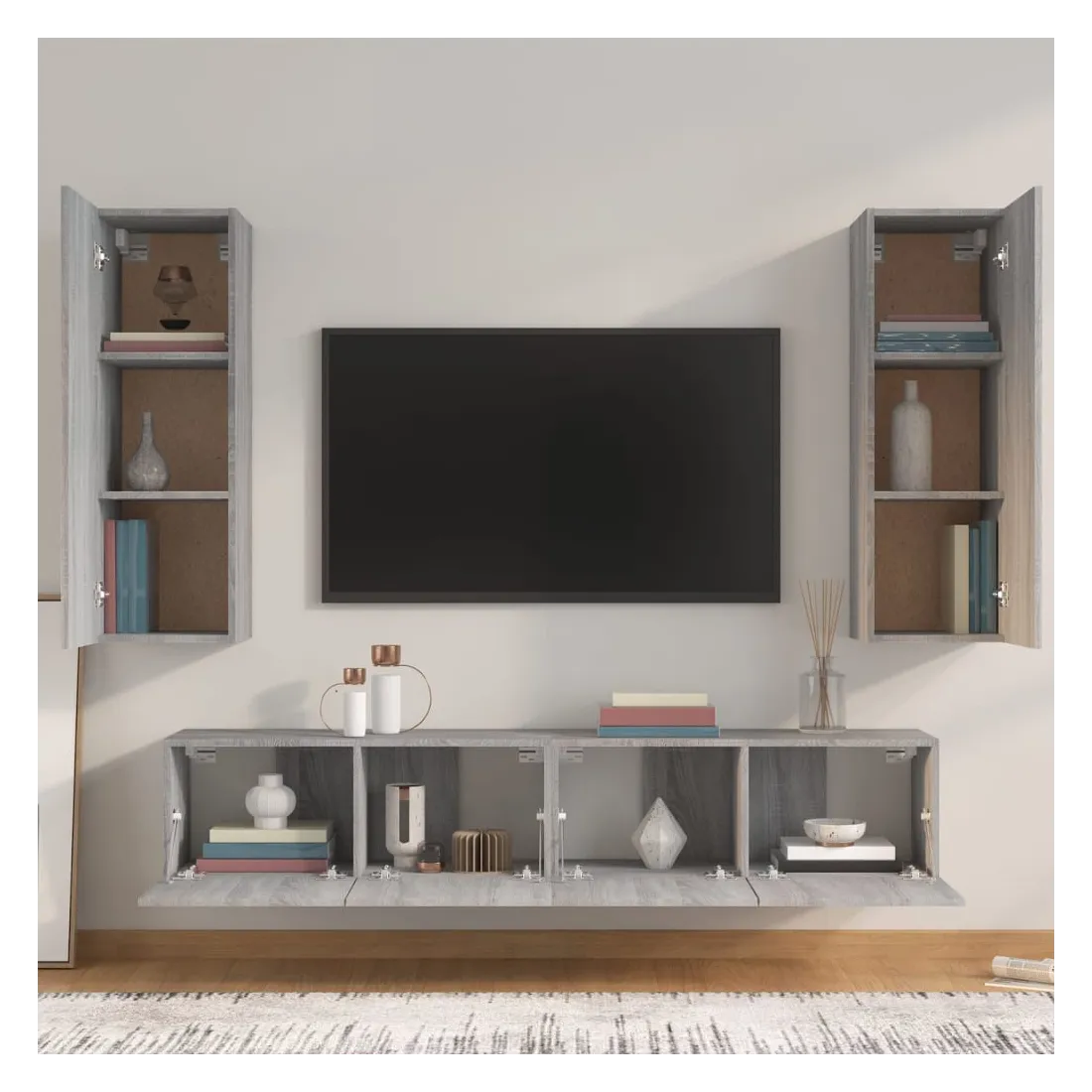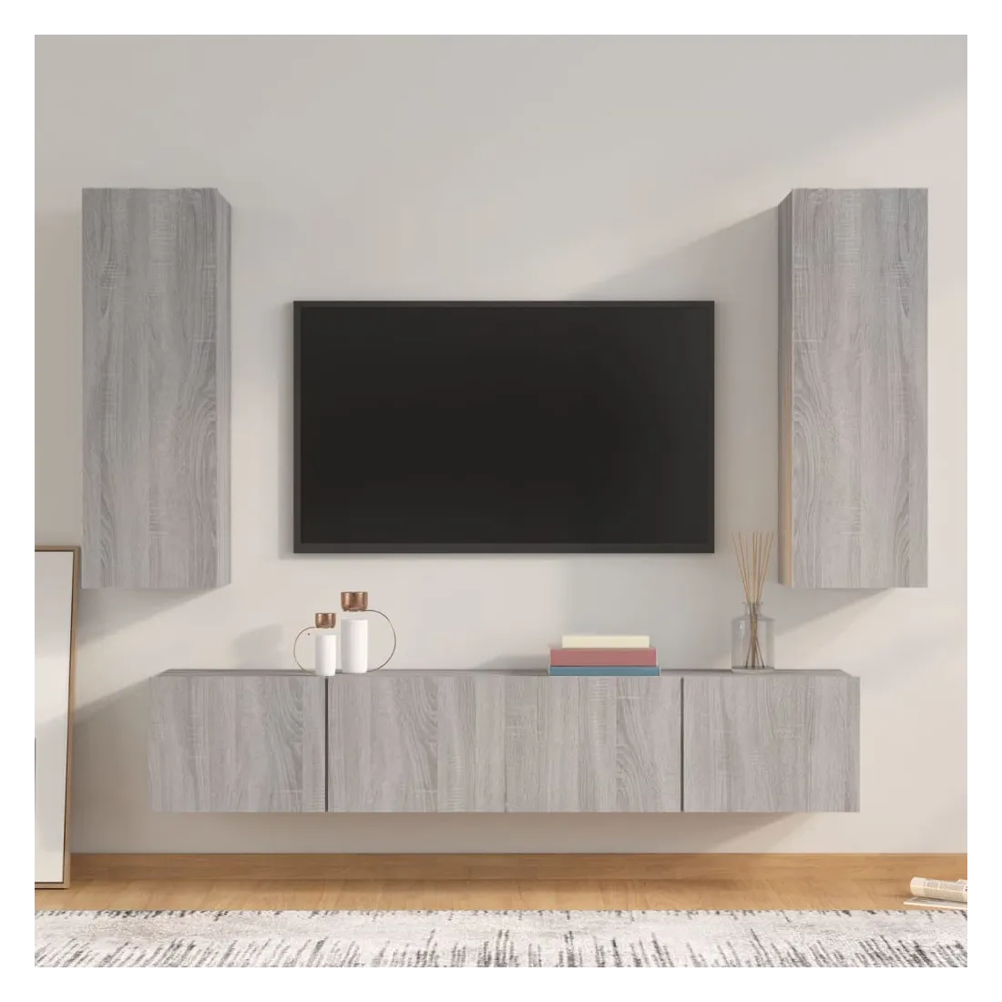Cet ensemble de meubles TV classique est conçu pour être le point central de votre pièce, avec un design à la fois tendance et pratique. Matériau robuste : le bois d'ingénierie est d'une qualité exceptionnelle avec une surface lisse et présente également résistance, stabilité et résistance à l'humidité.Grand espace de rangement : chaque meuble TV offre un grand espace de rangement pour garder tous vos magazines, DVD et autres articles bien organisés.Design mural : le meuble TV ne prend pas de place au sol. Vous pouvez l'accrocher au mur facilement. Remarque :Les vis et les chevilles pour l'intérieur du mur ne sont pas incluses. Recherchez et utilisez des vis et des chevilles adaptées à vos murs. Si vous n'êtes pas sûr, demandez conseil à un professionnel. Lisez et suivez attentivement chaque étape des instructions.Chaque produit est livré avec un manuel de montage dans la boîte pour un montage facile.