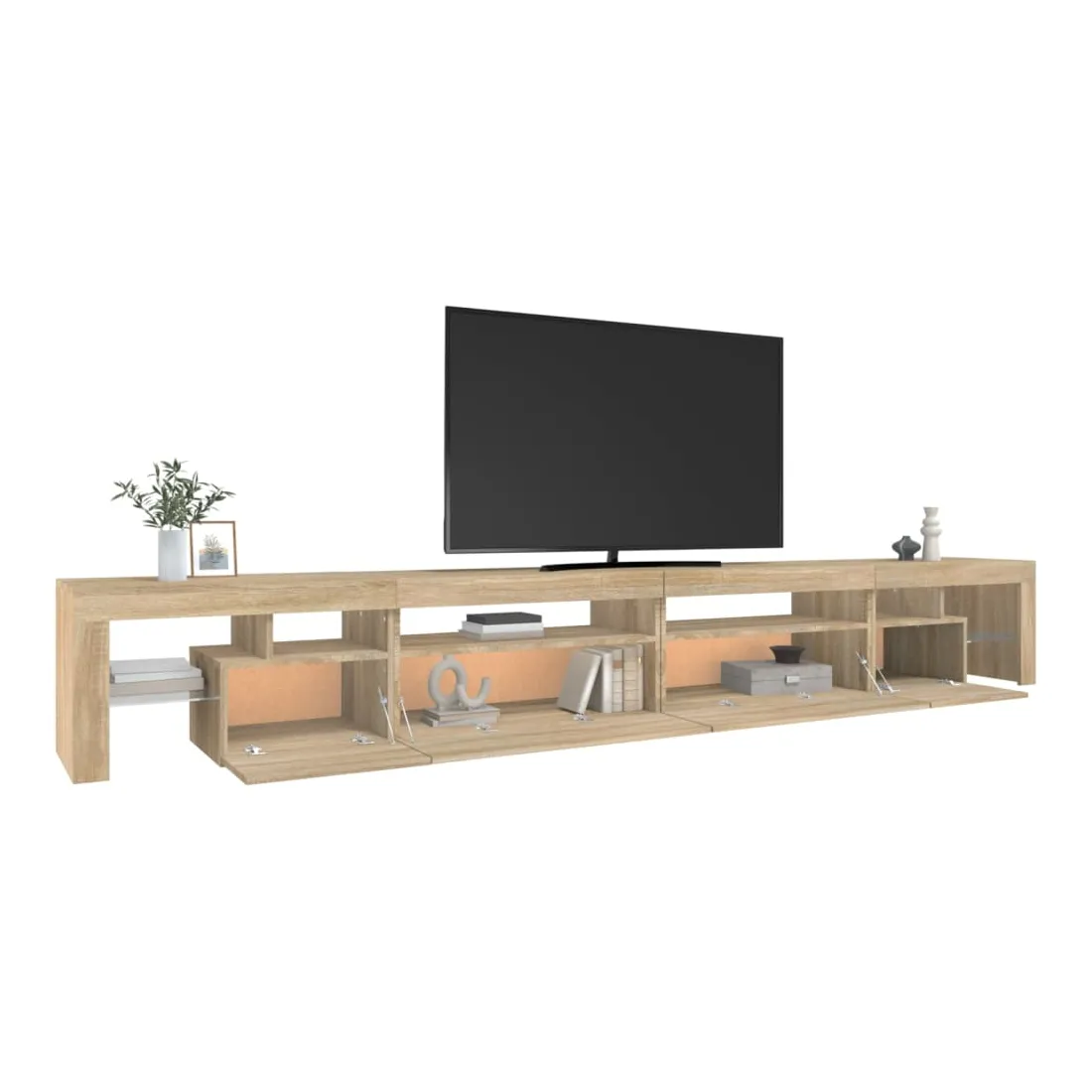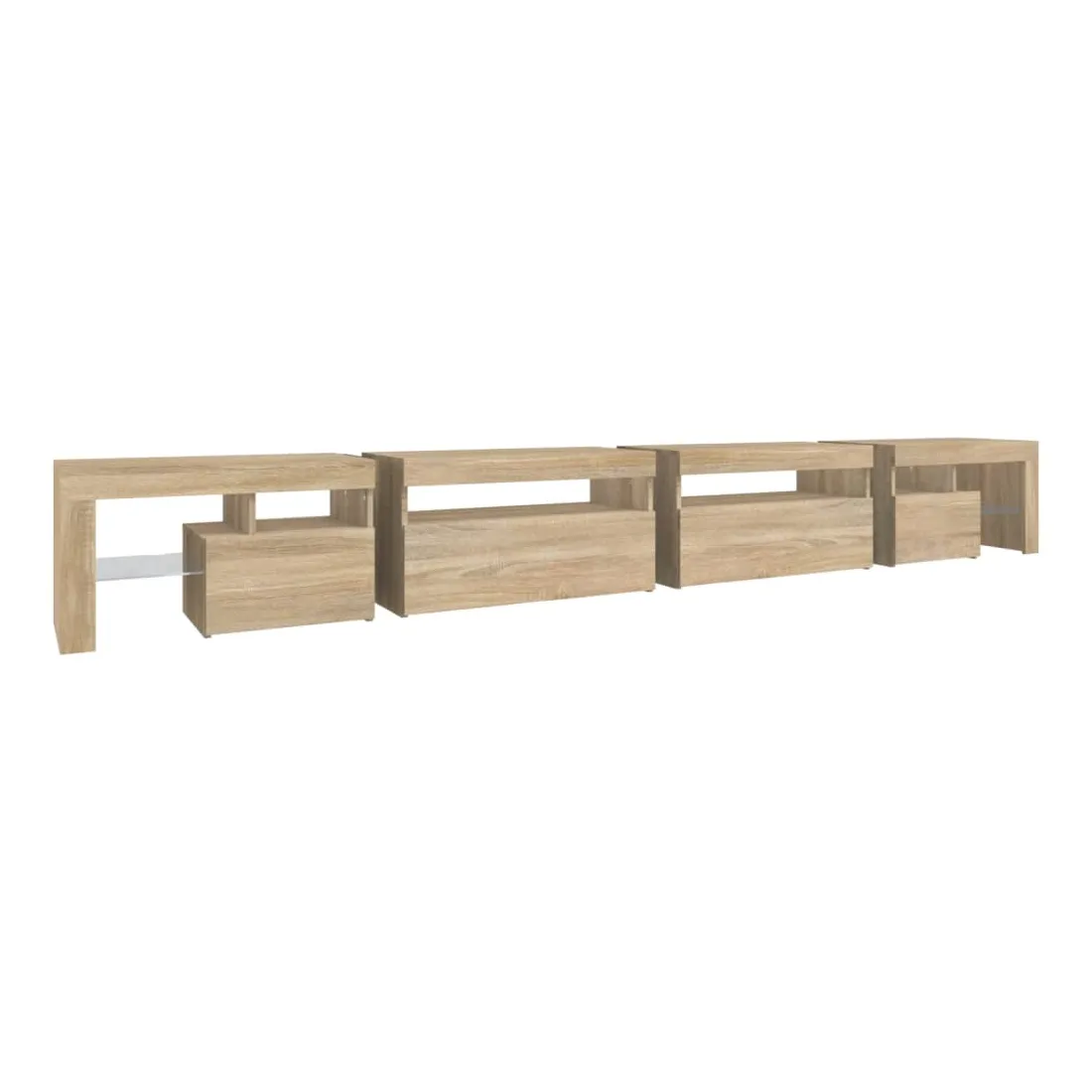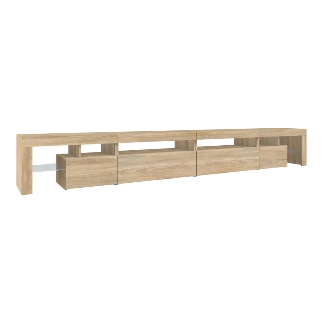 Avec un design à la fois tendance et pratique, ce meuble TV avec éclairage LED deviendra certainement un point central de votre pièce. Matériau pratique : le bois d'ingénierie est d'une qualité exceptionnelle avec une surface lisse et présente également résistance, stabilité et résistance à l'humidité. Lumières LED colorées : le meuble TV est doté de lumières LED RVB, qui ont différents menus pour changer la couleur des lumières et laisser la couleur s'ajuster automatiquement. Les lumières LED soulignent l'aspect moderne et contribuent à la sensation de tendance.Grand espace de rangement : le meuble TV offre un grand espace de rangement pour garder vos magazines, livres, télécommandes et autres petits objets bien organisés et à portée de main.Fonction d'affichage : le dessus robuste du meuble média est idéal pour exposer des objets décoratifs, des cadres photo et des plantes en pot. Remarque :Ce produit est doté d'un connecteur USB, mais la source d'alimentation certifiée de USB 5V n'est pas incluse.Chaque produit est livré avec un manuel de montage dans la boîte pour un montage facile.