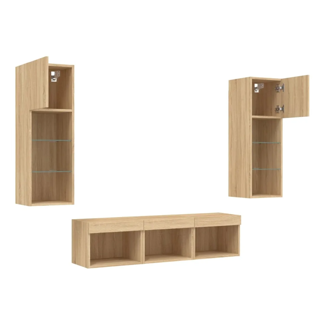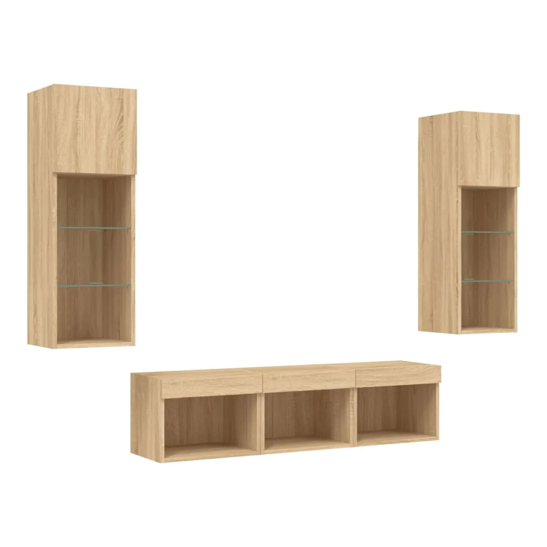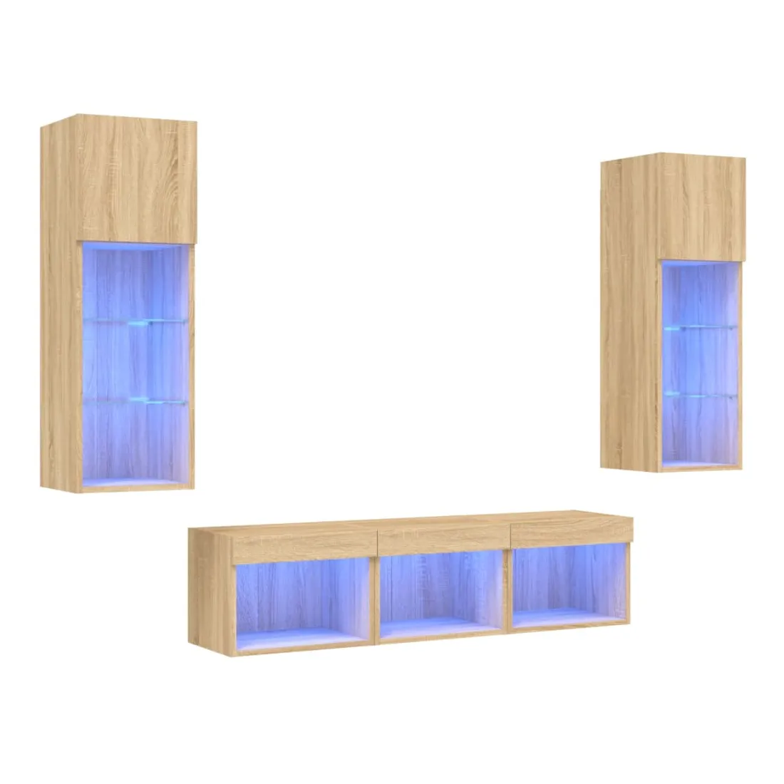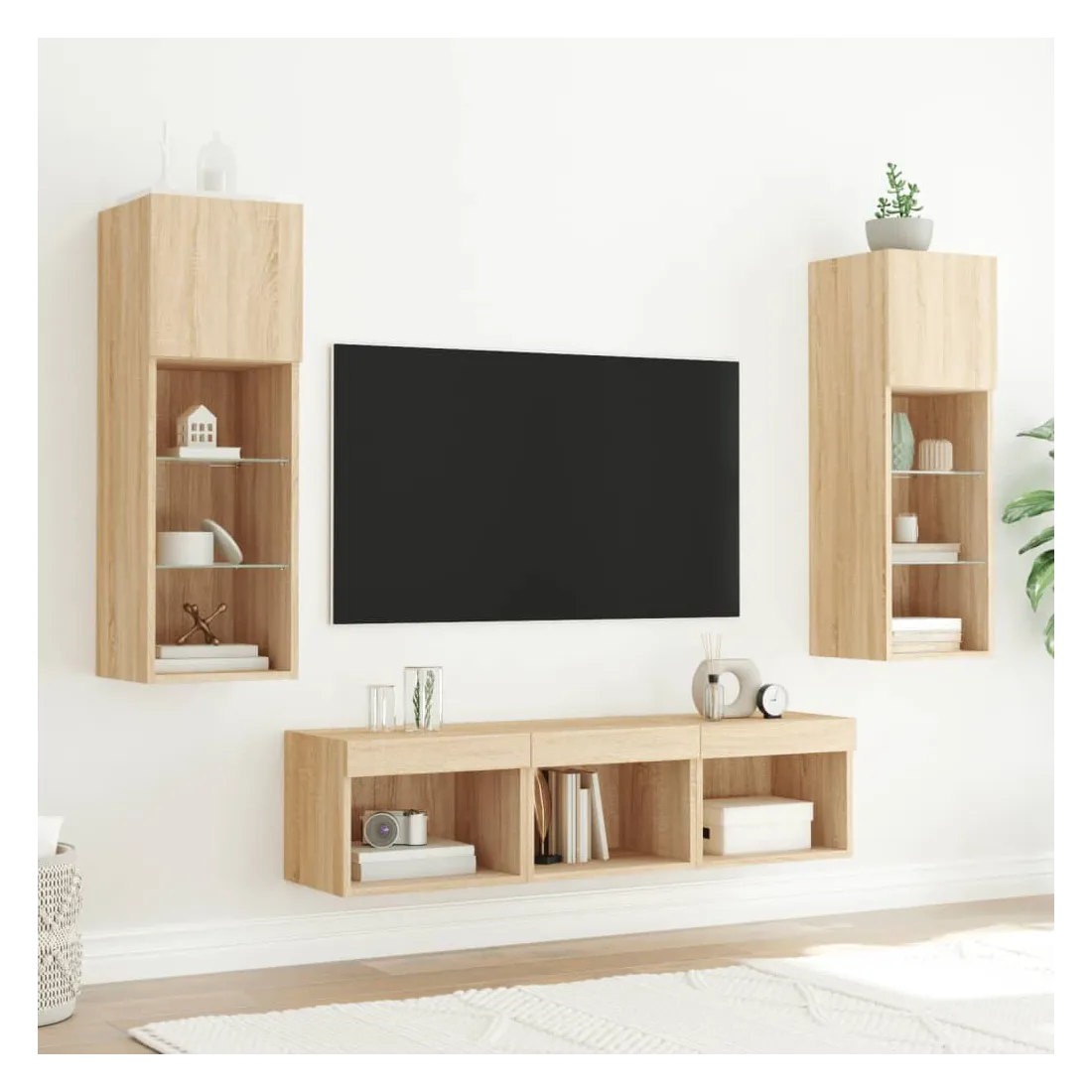 Ces unités murales TV sont la solution parfaite pour votre espace de vie afin de maximiser l'espace et de garder les surfaces au sol sans encombrement. Matériau robuste : le bois d'ingénierie est d'une qualité exceptionnelle avec une surface lisse et présente également résistance, stabilité et résistance à l'humidité.Lumières LED RVB : la unité TV est équipée de lumières LED RVB vibrantes. Avec divers menus personnalisables, vous pouvez changer sans effort la couleur des lumières et même les régler automatiquement. Ces lumières LED renforcent non seulement l'aspect contemporain du meuble TV flottant, mais aussi son attrait pour la mode.Design mural : le meuble de télévision peut être fixé au mur pour ajouter un espace de stockage supplémentaire. De cette façon, vous pouvez maximiser votre espace au sol et garder la zone propre.Grand espace de rangement : le meuble TV flottant est doté de différentes options de rangement, offrant ainsi un grand espace pour ranger vos objets quotidiens tels que les livres, les DVD, les accessoires multimédias et d'autres articles bien organisés et à portée de main.Design polyvalent : vous pouvez l'utiliser comme meuble TV ou le monter sur le mur du lieu de travail pour un rangement pratique des outils ou d'autres articles divers. En outre, il transforme un mur vide en élément de design. Bon à savoir :Les vis et les chevilles pour l'intérieur du mur ne sont pas incluses. Nous vous conseillons de trouver et d'utiliser des vis et des chevilles adaptées spécifiquement à vos murs. Si vous n'êtes pas sûr, vous pouvez consulter un professionnel. Veuillez lire et suivre chaque étape des instructions.Ce produit est doté d'un connecteur USB qui nécessite une source d'alimentation USB de 5V certifiée (non incluse).
