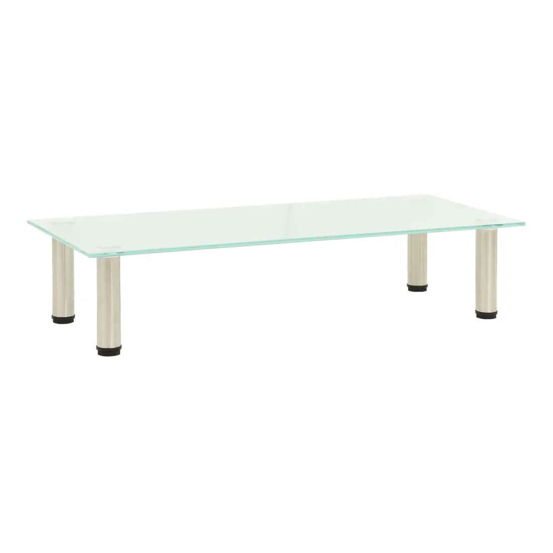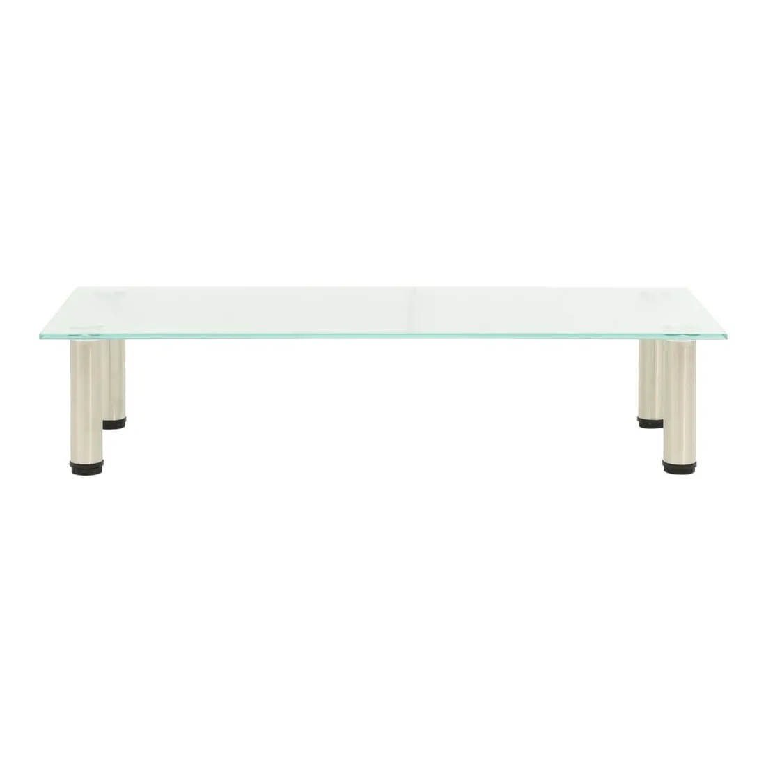 Ce meuble TV contemporain en verre trempé ajoute une touche moderne à votre salon et à votre chambre à coucher. Cette table de télévision est fabriquée en verre trempé épais et en acier inoxydable résistant, ce qui la rend extrêmement solide et sûre. Le dessus de table solide peut être utilisé pour placer la télévision, l'ordinateur portable et d'autres dispositifs multimédias. Vous pouvez également mettre vos boissons, vases et autres petits objets. De plus, la surface lisse est facile à nettoyer avec un simple chiffon humide.