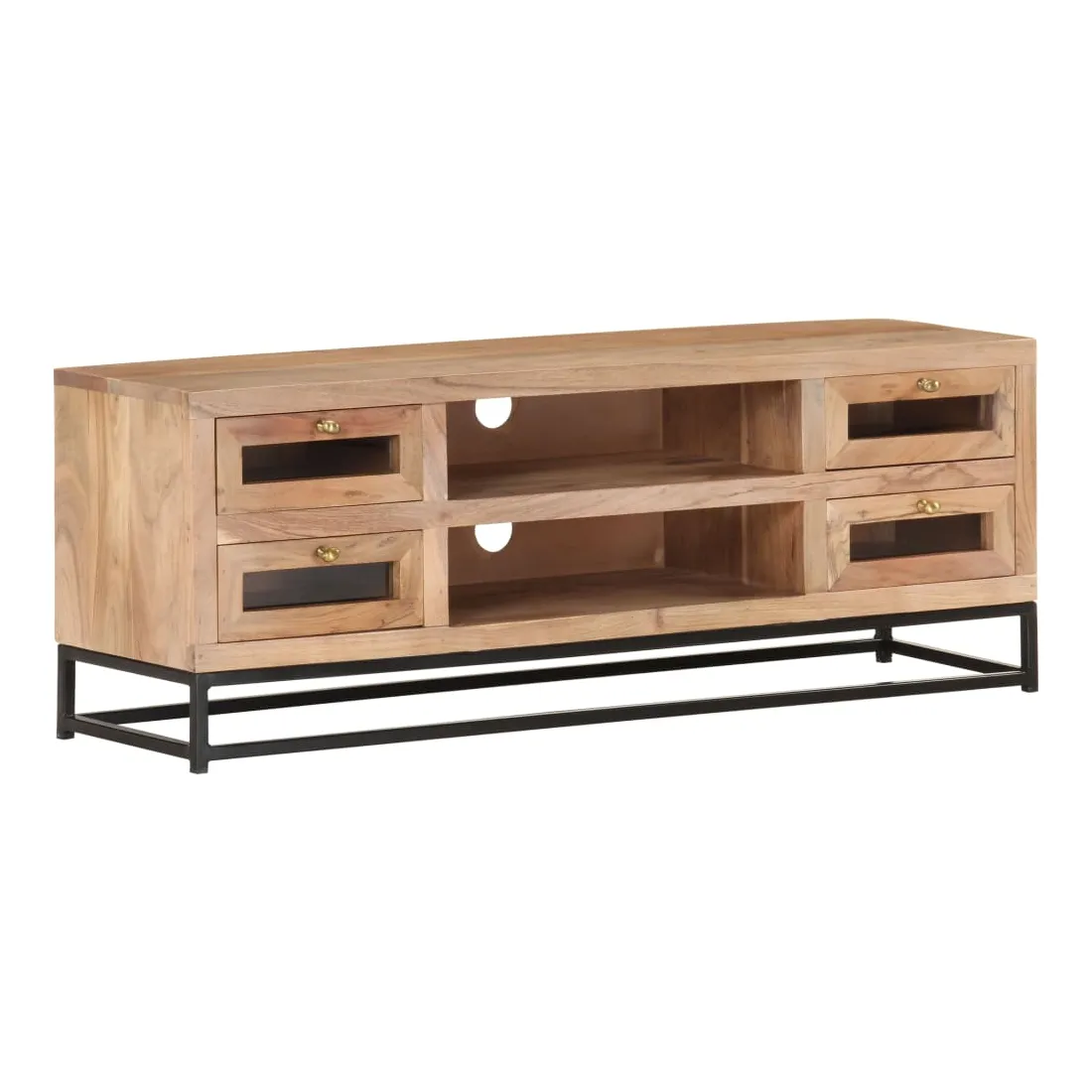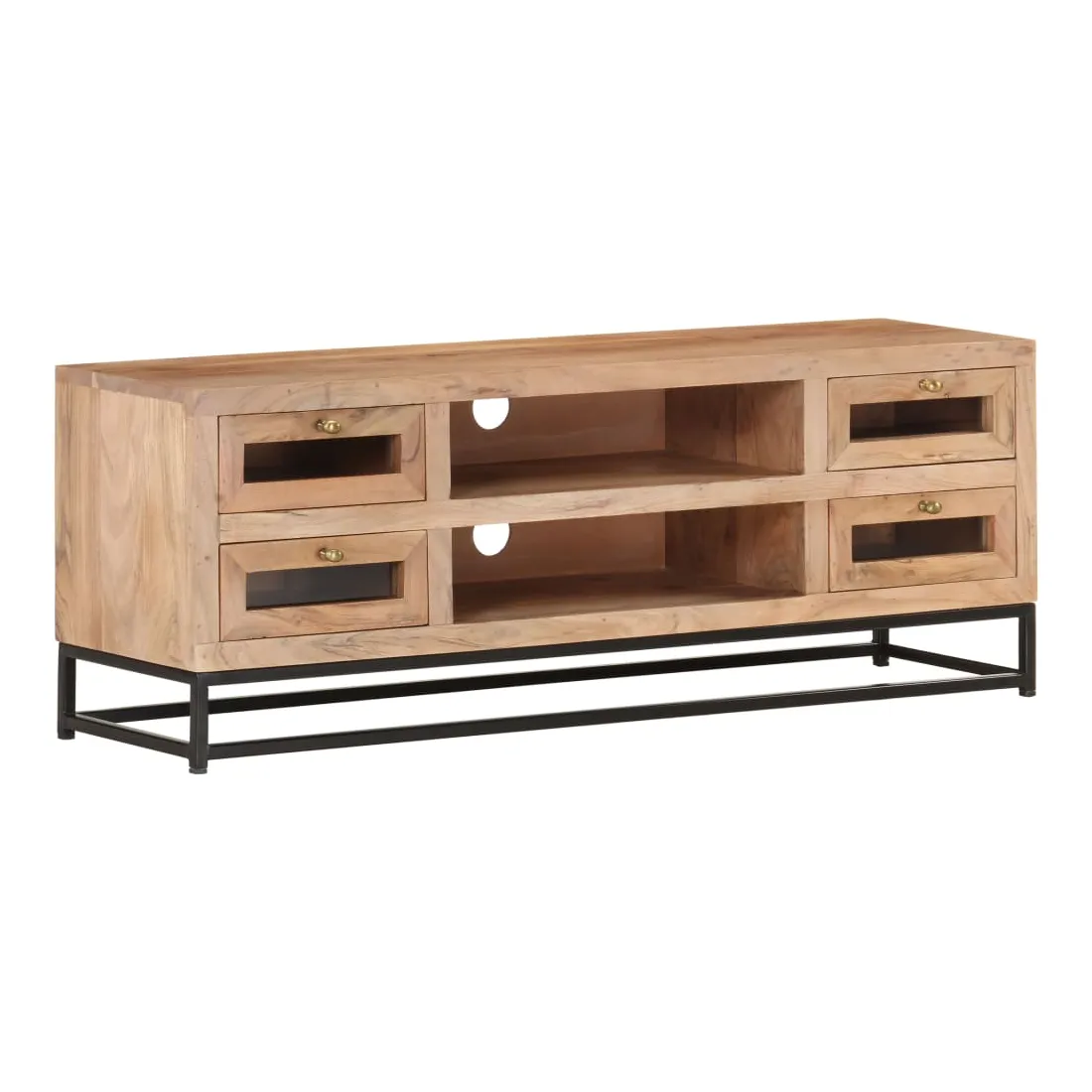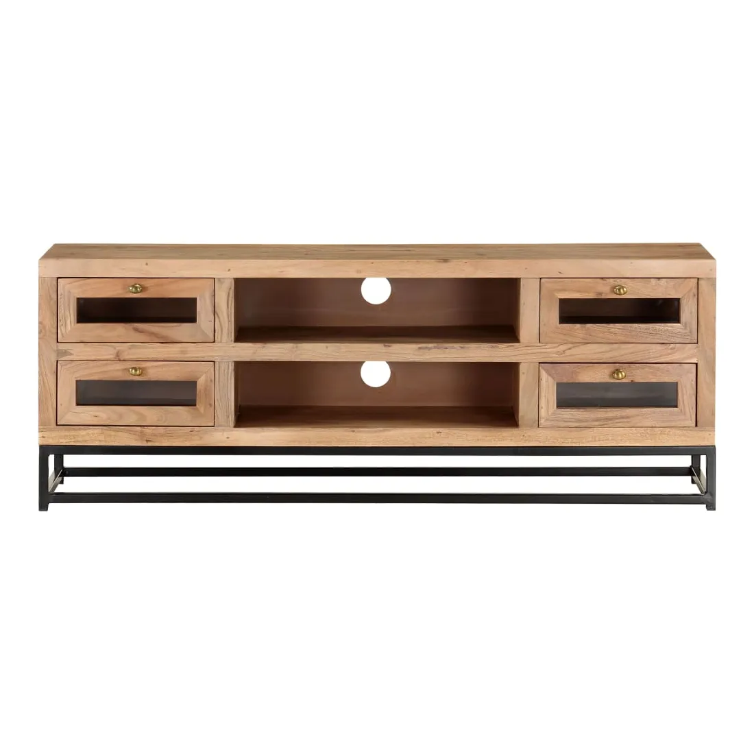 Introduisez un air de charme industriel dans votre décoration intérieure avec cet élégant meuble TV en bois ! Ce meuble stéréo est fabriqué en bois d'acacia massif, ce qui le rend robuste et stable. Le savoir-faire artisanal et les beaux grains du bois rendent chaque meuble unique et légèrement différent l'un de l'autre. Le meuble hi-fi est équipé de 4 tiroirs et de 2 étagères, afin que vous puissiez afficher ou garder tous les articles que vous souhaitez bien organisés. De plus, la base en acier ajoute à sa robustesse. Remarque importante : les grains et les couleurs du bois varient d’une pièce à l’autre, ce qui rend chaque armoire à vitrine unique.