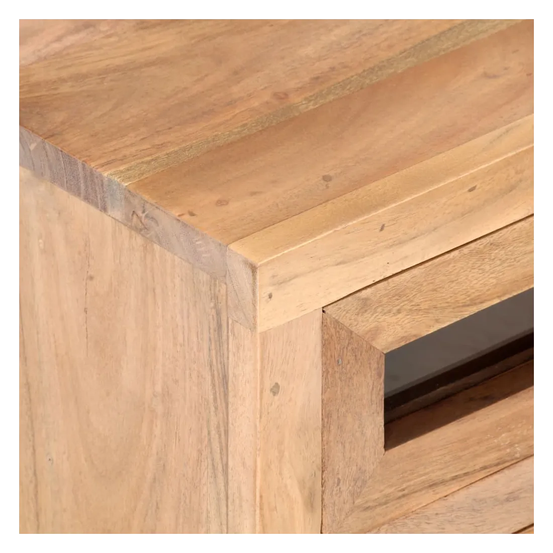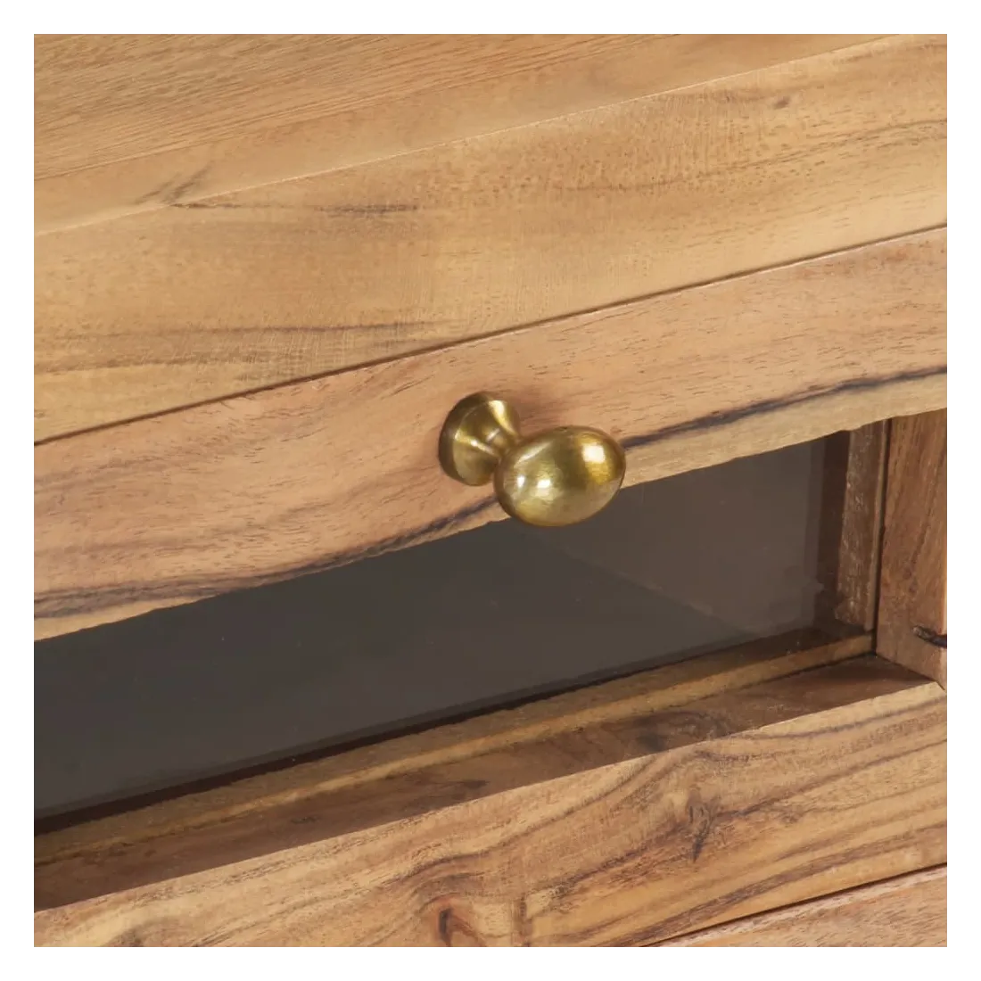 - Matériau : bois d'acacia massif avec une finition naturelle, verre, acier enduit de poudre