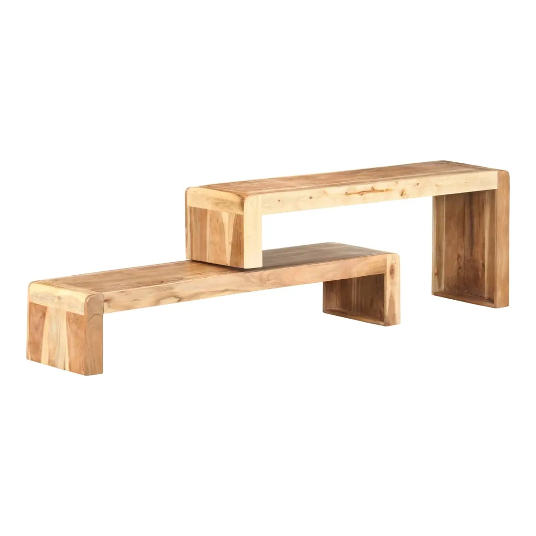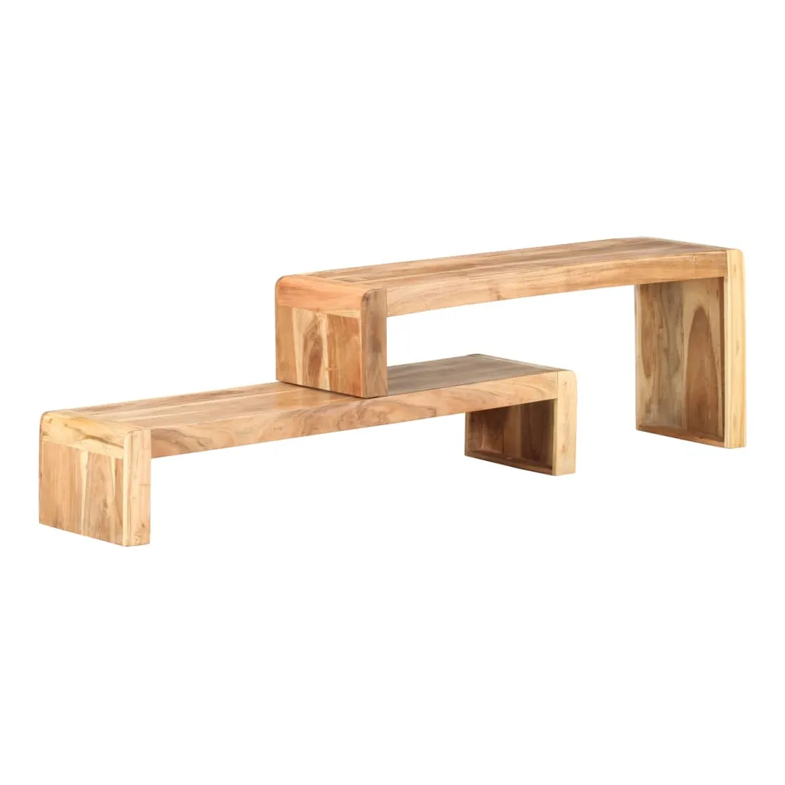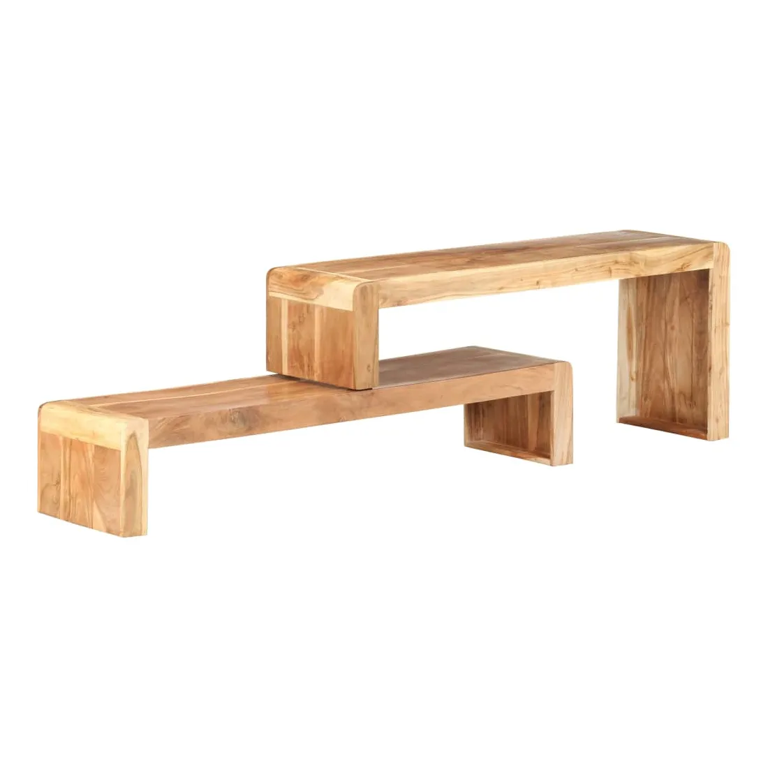 Ce meuble TV en bois, au style industriel, est un meuble simple et pratique pour votre salon. Ce meuble stéréo est fait de bois d’acacia massif, un bois dur avec des grains denses. Ce buffet au design magnifique est stable, durable et attire l'attention. De plus, l’artisanat exquis et les belles veines du bois font que chaque pièce soit légèrement différente l'une de l'autre. Le meuble TV est conçu avec 1 étagère inférieure et 1 étagère supérieure, et la longueur totale est réglable. Vous pouvez placer l’étagère supérieure dans différents endroits que vous préférez. Remarque importante : les couleurs varient d'une pièce à l'autre, rendant chaque pièce unique. La livraison est aléatoire, garantissant l'exclusivité et l'individualité de votre produit.