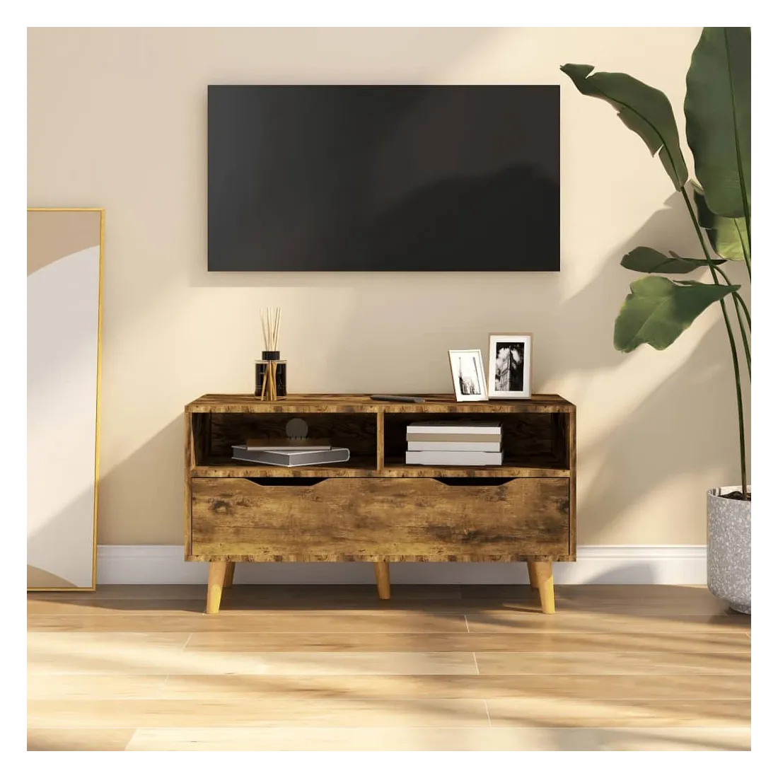 Meuble TV chêne fumé 90x40x48,5 cm bois d'ingénierie