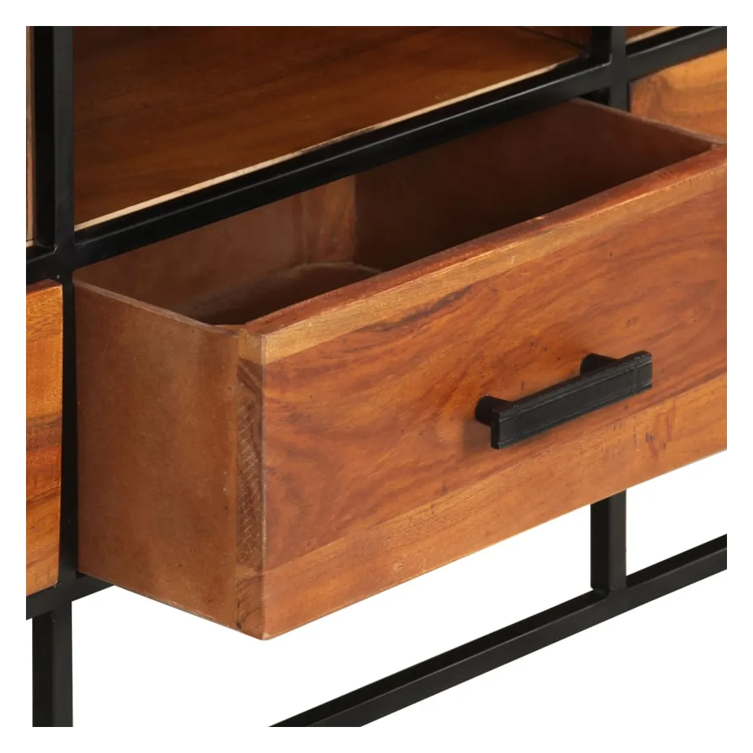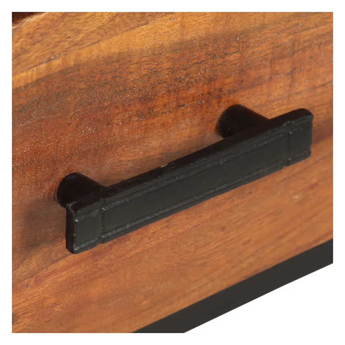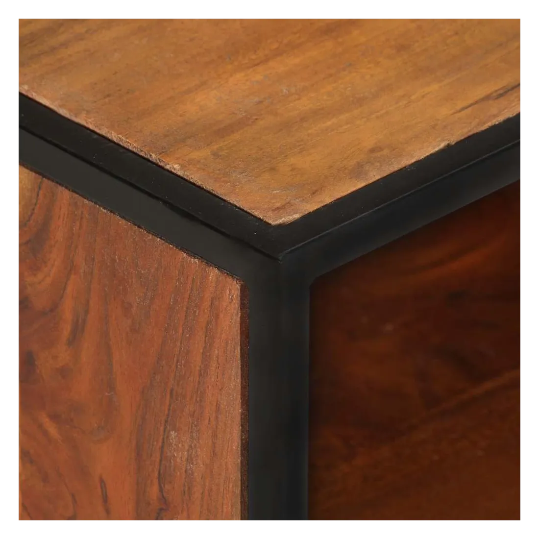 - Matériau : bois d'acacia massif avec finition miel, fer enduit de poudre noir, MDF