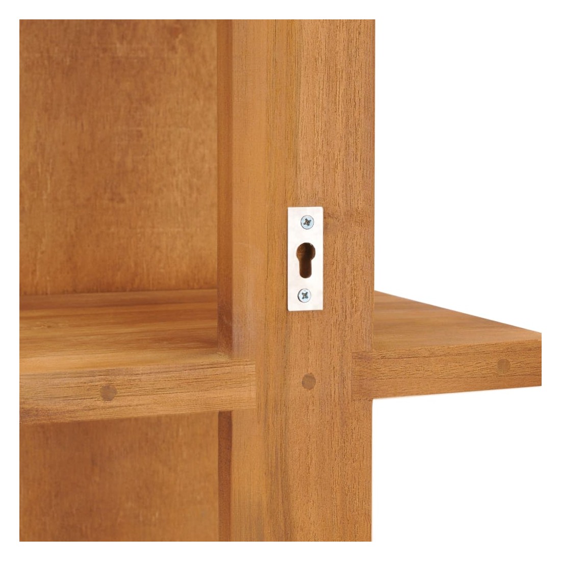 Ce miroir mural avec étagères, doté d’un style colonial mais rustique, offre des fonctions doubles dans votre décoration de salle de bain. Le miroir de salle de bain est en bois de teck massif avec une finition naturelle, ce qui le rend assez stable et facile à entretenir. Ce miroir en bois a quatre étagères ouvertes à l’arrière, de sorte qu’il puisse non seulement être utilisé pour vous regarder dans le miroir, mais qu'il offre également suffisamment d’espace pour placer des shampoings, des cosmétiques, des dentifrices, etc. De plus, pour votre commodité, il y a des trous de montage insérés dans ce produit quand il est mis sur le mur.