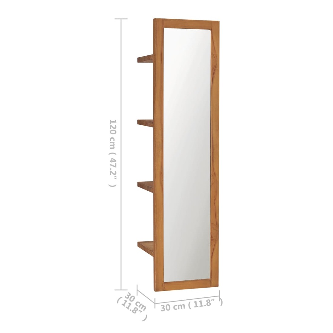 Miroir mural avec étagères 30x30x120 cm Bois de teck massif
