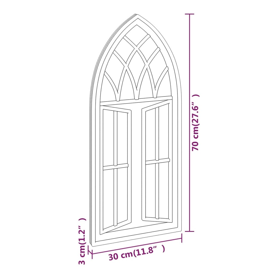 Miroir Noir 70x30 cm Fer pour utilisation à l'intérieur