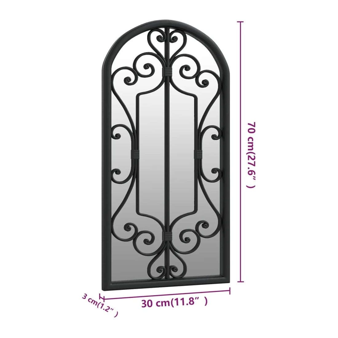 Miroir Noir 70x30 cm Fer pour utilisation à l'intérieur