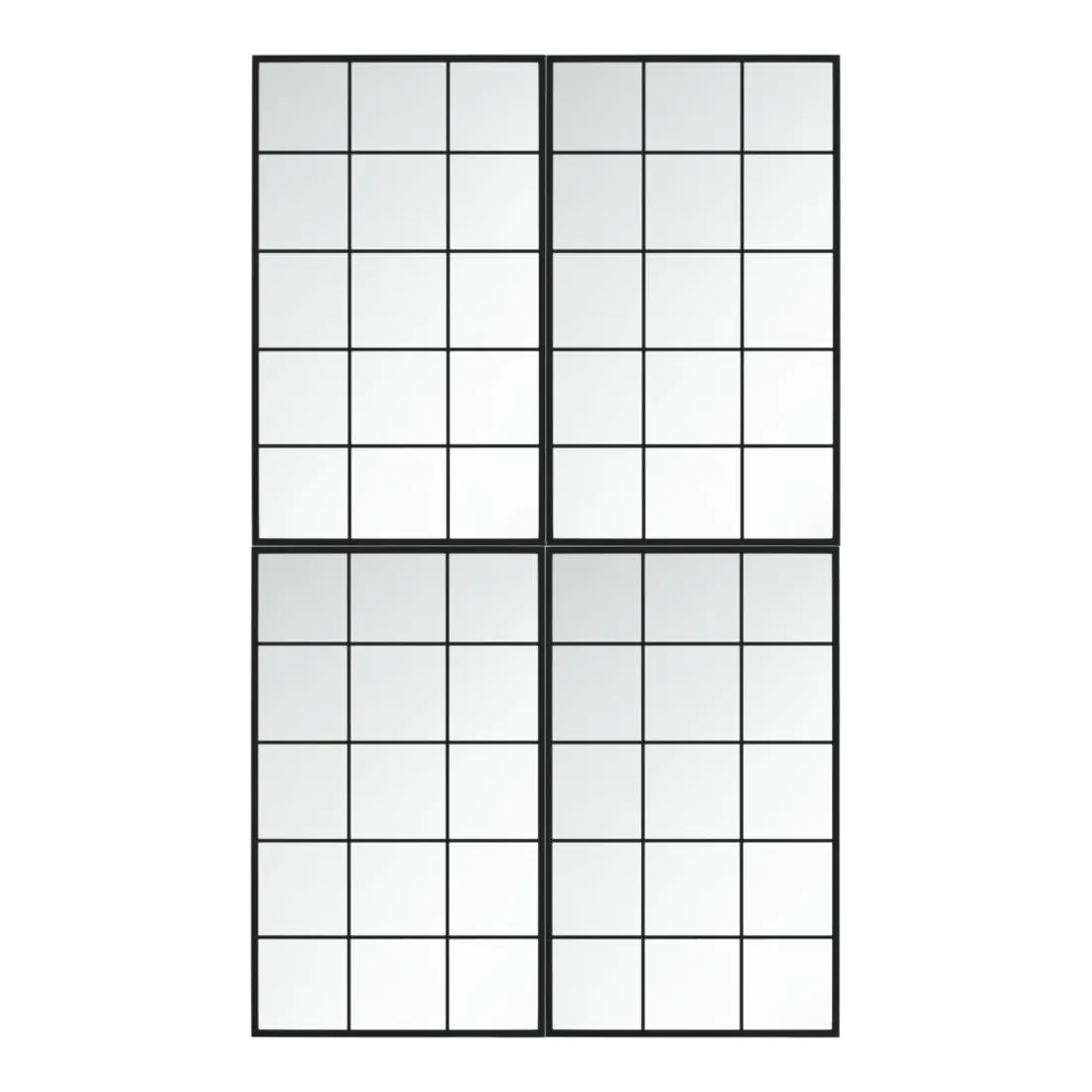 Ces miroirs muraux sont un supplément parfait à votre pièce intérieure, créant une impression durable ! Fonction murale : le miroir peut être fixé au mur, donc vous pouvez maximiser votre espace au sol et garder la zone propre.Utilisations multiples : servi de miroir de coiffure, de miroir de maquillage et de miroir décoratif, vous pouvez ajouter du style à votre espace en décorant le miroir dans votre chambre à coucher, placard, couloir, salon, salle de bains et vanité.Installation facile : grâce à sa conception à crochet, placer ce miroir de couloir à l'endroit souhaité est facile et rapide.Design intemporel : ce miroir carré finement conçu, avec ses lignes épurées et ses bords lisses, ajoute une touche conventionnelle et classique à votre décoration intérieure. Bon à savoir :Ce produit contient 4 miroirs (100 x 60 cm), qui peuvent être accrochés l'un à côté de l'autre pour une taille totale de 200 x 120 cm.