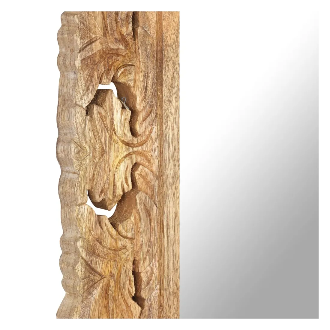 vidaXLCe miroir en bois de manguier massif est plus qu'un objet pratique au quotidien, c'est également une jolie décoration pour votre maison. Le bois de manguier massif est un bois dur tropical. Il a la force de soutenir le poids et résiste également à l'usure du temps. De plus, le savoir-faire exquis et les beaux grains de bois rendent chaque pièce de miroir en bois légèrement différente l'une de l'autre. Le motif sculpté à la main ajoute à la beauté du miroir. Remarque importante : les couleurs et les grains de bois peuvent varier d'une pièce à l'autre, ce qui rend chaque pièce unique et légèrement différente l'une de l'autre ; la livraison est aléatoire.