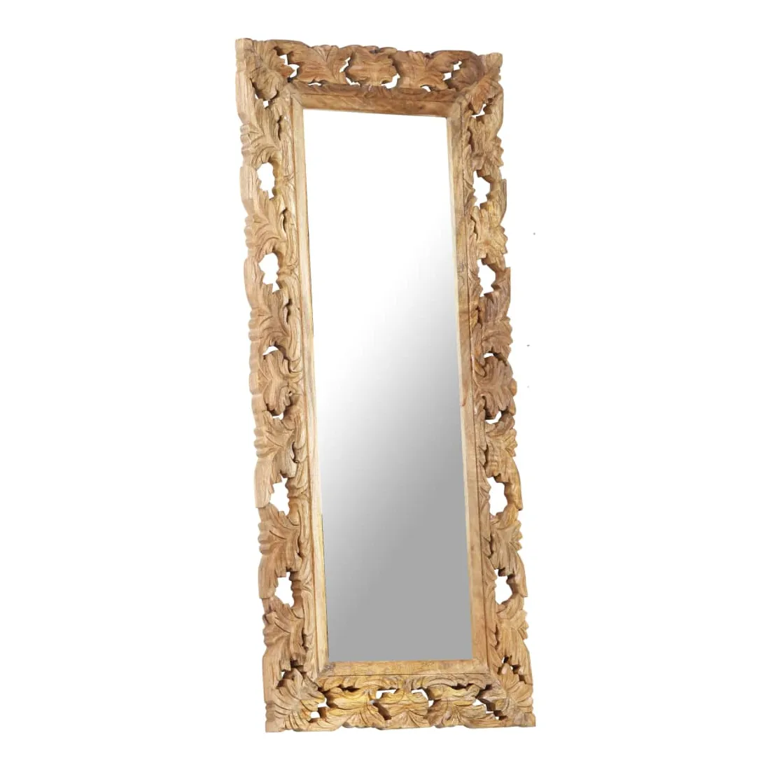 Miroir sculpté à la main Marron 110x50 cm Bois de manguier