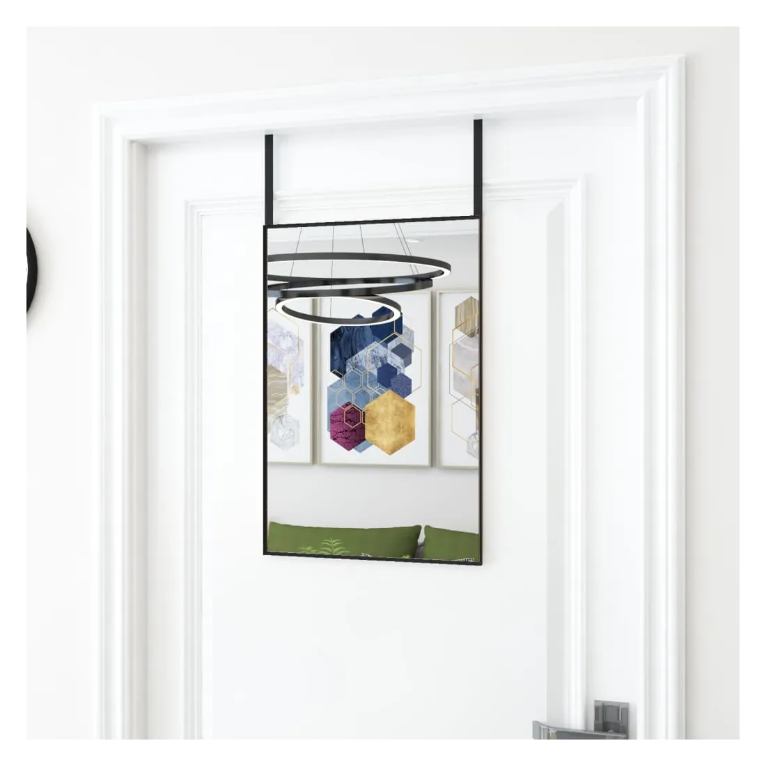 Ajoutez une touche d'esthétique minimaliste à votre décor avec ce miroir de porte pratique ! Il convient à la chambre à coucher, au salon, au couloir, partout où un miroir pourrait être nécessaire. Cadre robuste et stable : le cadre en aluminium assure robustesse et stabilité.Hauteur réglable : les crochets de porte inclus permettent différentes hauteurs du haut de la porte pour assurer une vue parfaite de vous-même.Fonction d'économie d'espace : en le plaçant sur la porte ou sur le mur, le miroir de dressing avec son design simple et précis peut aider à économiser de l'espace.Facile à installer : aucun assemblage requis. Grâce aux deux crochets inclus, vous pouvez facilement suspendre le miroir mural classique sur votre porte.