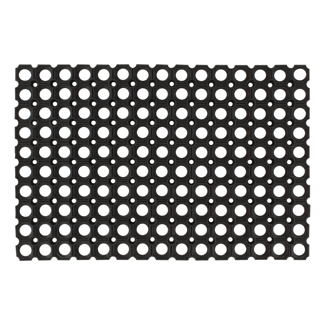 Placez ce paillasson en caoutchouc sur le sol de votre entrée et gardez la saleté à l'extérieur ! Matériau durable : le paillasson est fabriqué à partir de caoutchouc flexible, absorbant les chocs et résistant à l'usure, garantissant durabilité et résistance aux taches.Conception antidérapante : ce tapis d'entrée a des points surélevés et une texture nervurée pour une meilleure adhérence et stabilité, empêchant efficacement tout glissement pendant l'utilisation.Fonction de drainage : ce paillasson en caoutchouc est conçu avec des trous de drainage qui aident à évacuer la boue, l'eau de pluie ou les taches d'eau des chaussures. De plus, il est facile à nettoyer : il suffit de le rincer à l'eau !Applications larges : ce tapis en caoutchouc peut être utilisé aussi bien à l'intérieur qu'à l'extérieur, comme dans les bars, cuisines, restaurants, entrepôts, jardins et autres zones industrielles humides et très peuplées.