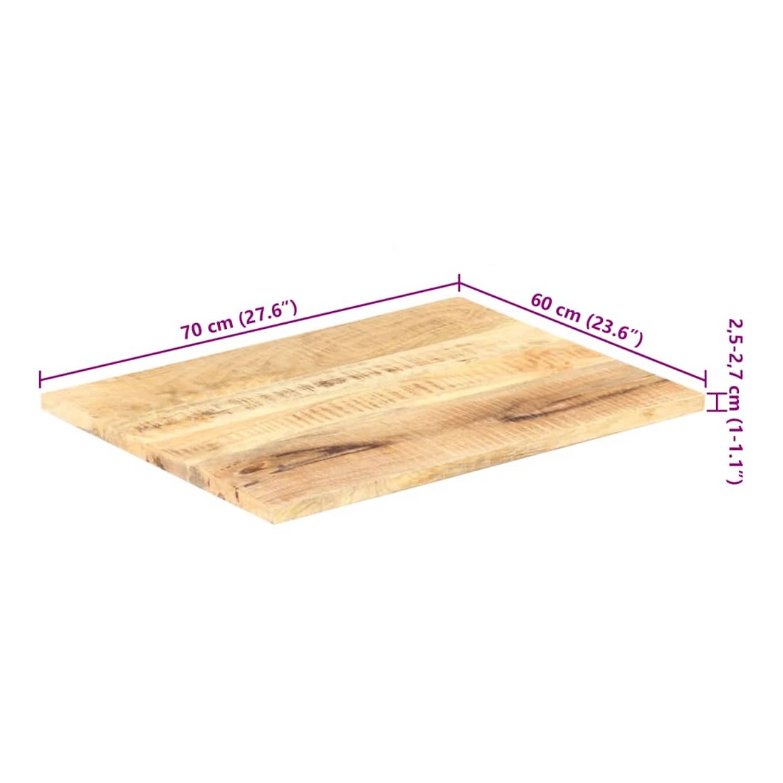 Dessus de table Bois de manguier solide 25-27 mm 70x60 cm
