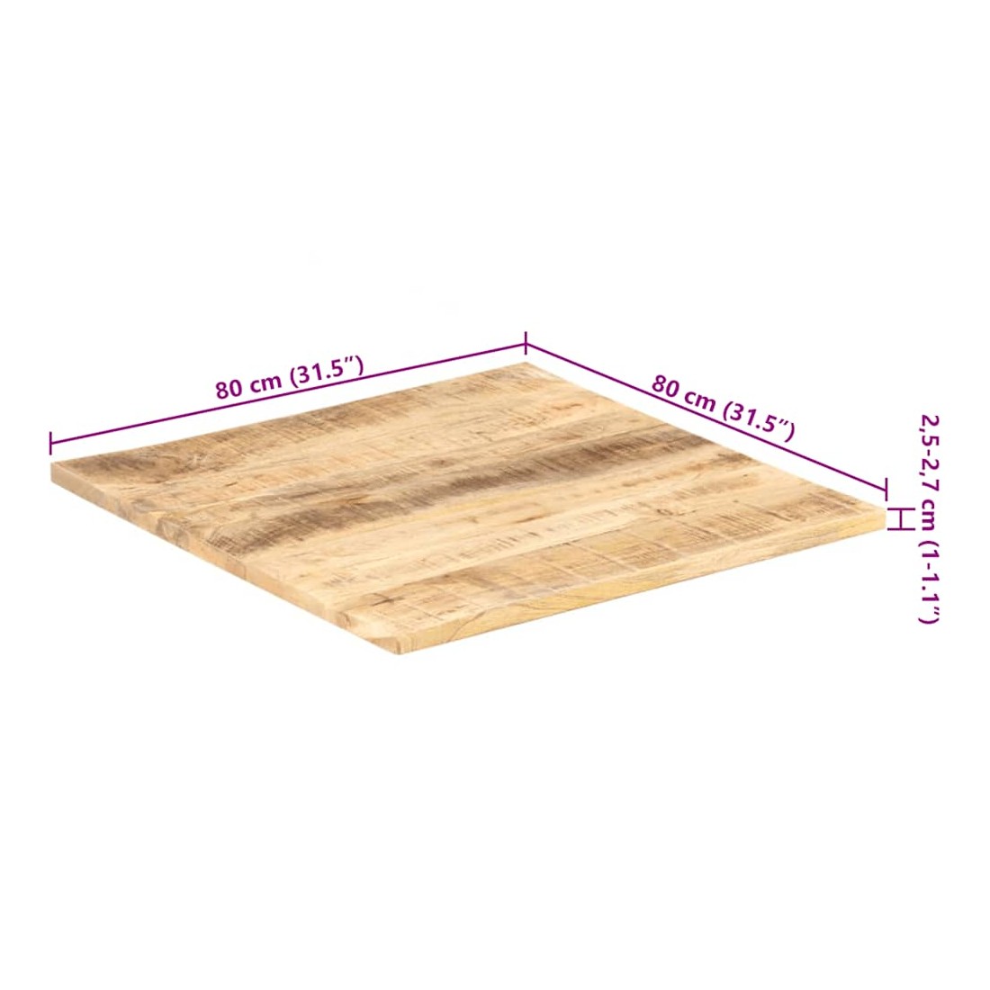Dessus de table Bois de manguier solide 25-27 mm 80x80 cm
