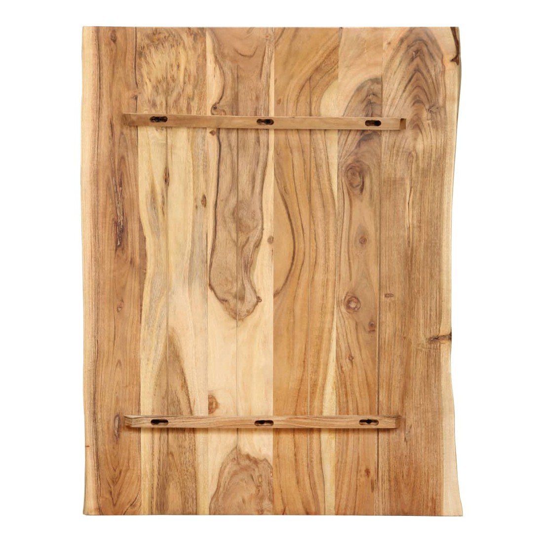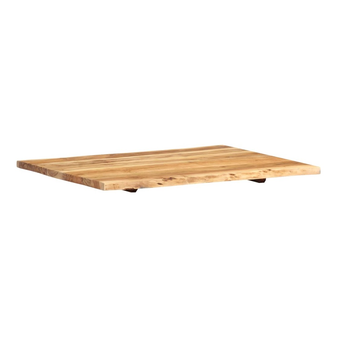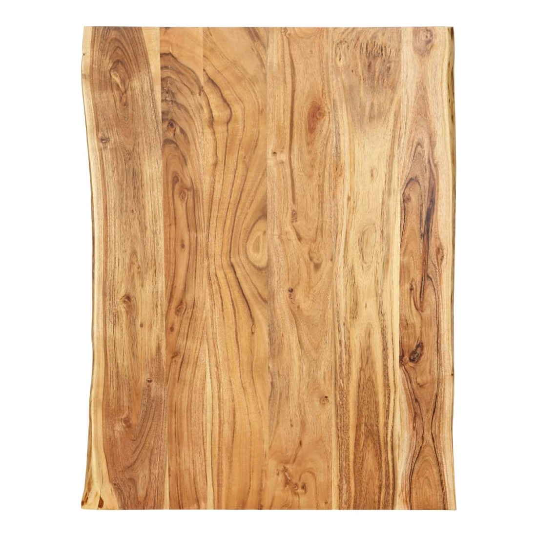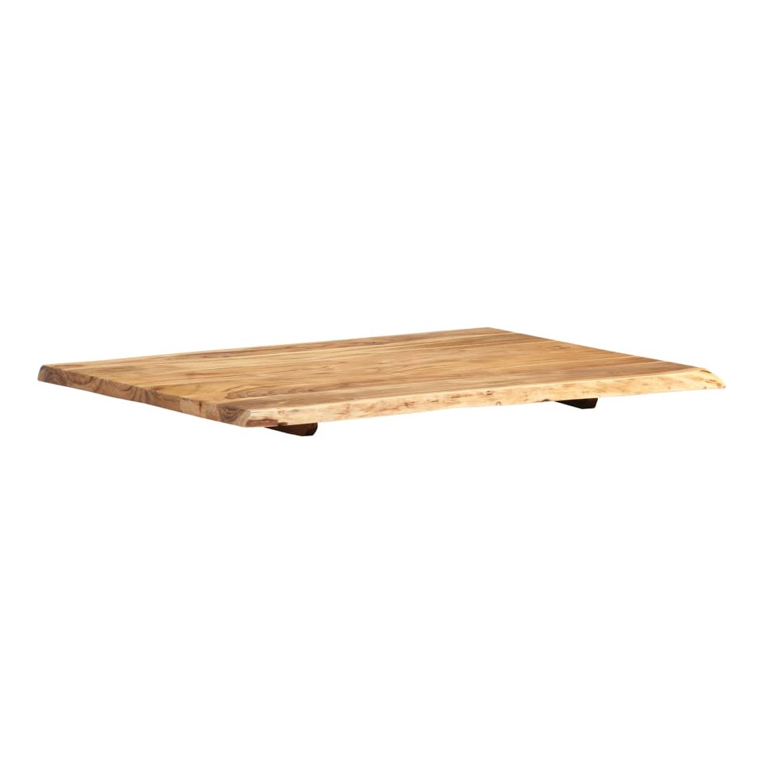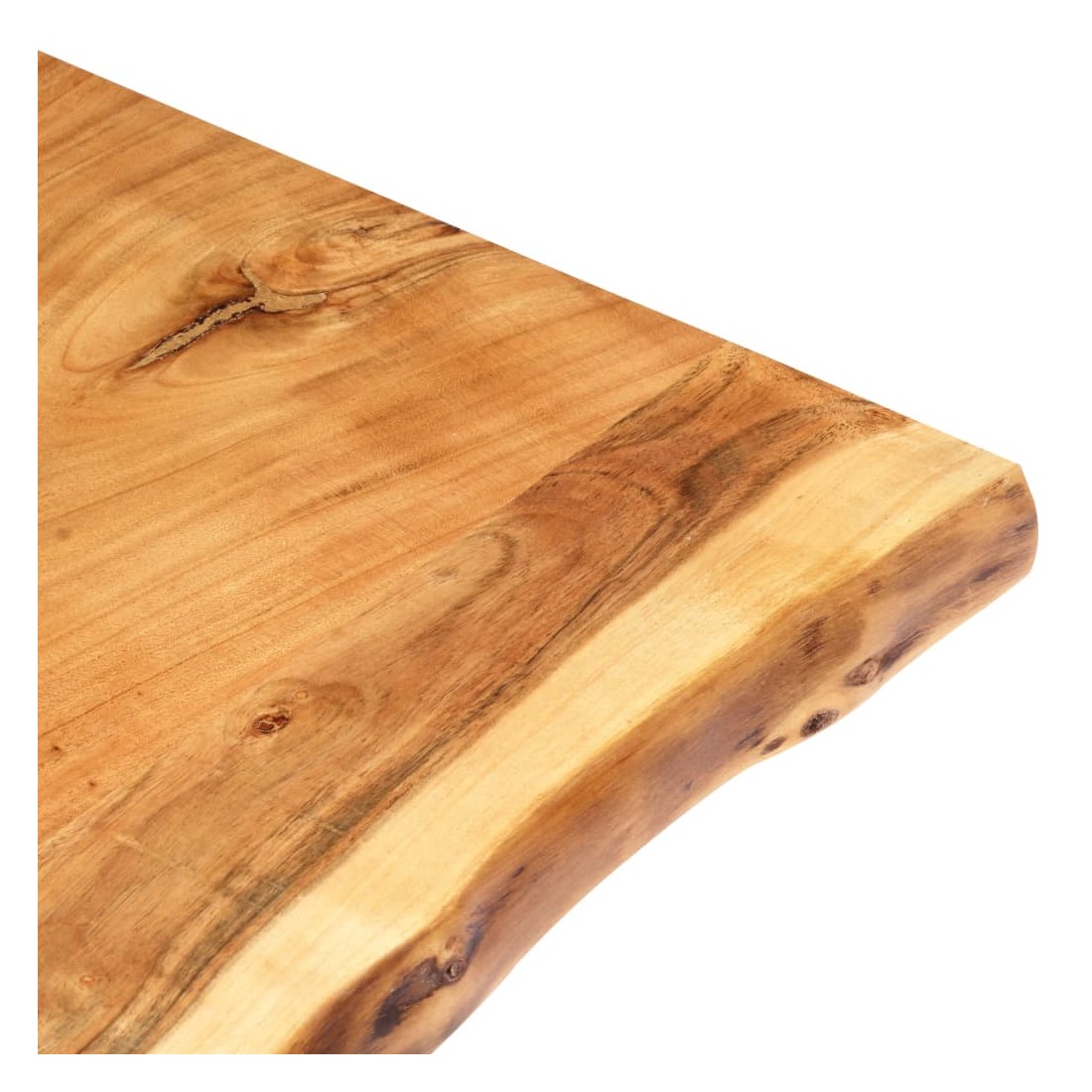 Ce dessus de table en bois d'une simplicité spectaculaire apporte style et fonctionnalité à vos tables existantes comme les tables de cuisine, les tables basses, les bureaux, etc. Ce dessus de table de cuisine est en acacia massif, un bois dur tropical, qui est dense, robuste et durable. Le bois d'acacia massif a été poli, peint et laqué pour le sceller et le protéger de l'humidité. Ce dessus de table de cuisine est fabriqué à partir d'un tronc d'arbre et comporte une bord en bois vivant, qui préserve la beauté du bois. Chacun de nos dessus de table est unique. Les veines et les bords du bois peuvent varier légèrement.
