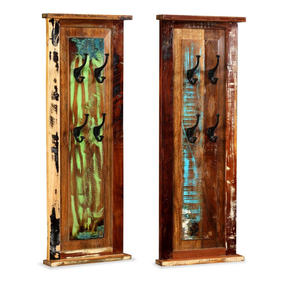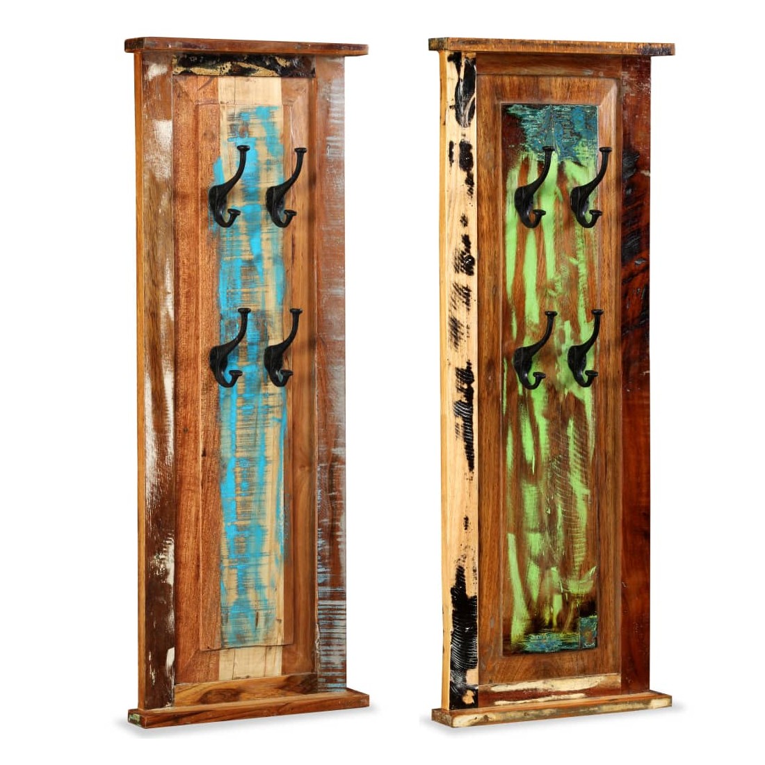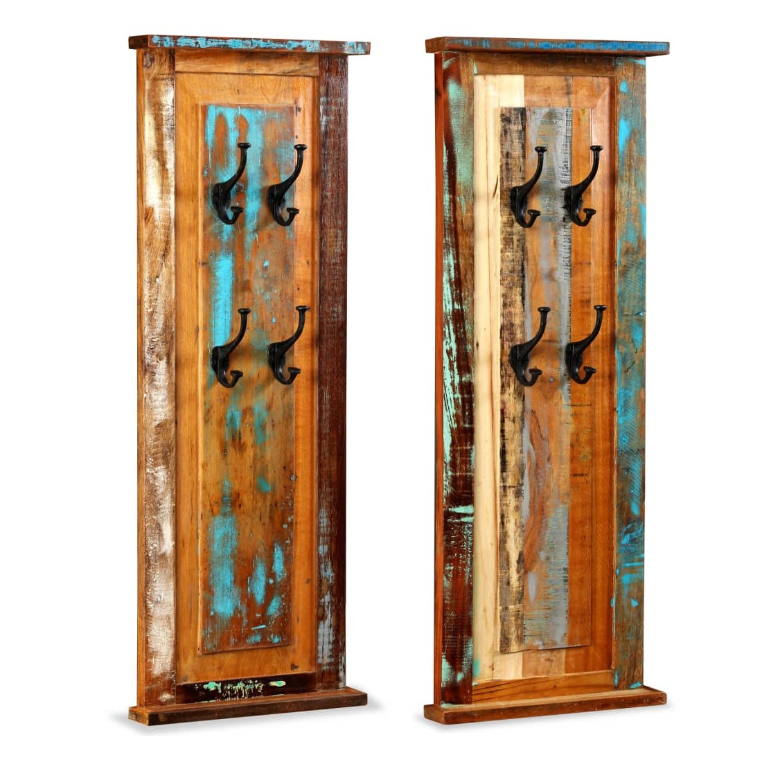 Combinant un attrait esthétique avec une fonctionnalité pratique, ces porte-manteaux en bois de style antique sont idéaux pour une utilisation dans votre chambre à coucher, couloir ou vestiaire. Chaque porte-manteau dispose de 4 crochets en fer forgé de haute qualité qui sont très solides et durables. Ces supports muraux de style rétro et intemporels représentent une solution idéale pour garder vos manteaux, foulards ou chapeaux parfaitement organisés. Ces porte-manteaux sont fabriqués à la main à partir du bois de récupération massif qui est stable, durable et agréable, avec les caractéristiques de différents bois comme le teck, le bois du manguier, l'acacia, etc. Chaque étape du processus est réalisée avec le plus grand soin qu'il s'agit du polissage, de la peinture ou du laquage. Le travail d'artisanat et les beaux grains de bois rendent chaque meuble unique et légèrement différent l'un de l'autre. La livraison comprend 2 porte-manteaux. Remarque importante : les couleurs varient d'une pièce à l'autre, rendant chacun de nos porte-manteaux unique. La livraison est aléatoire, ce qui garantit l'exclusivité et l'individualité de votre produit. L'assemblage est vraiment facile.
