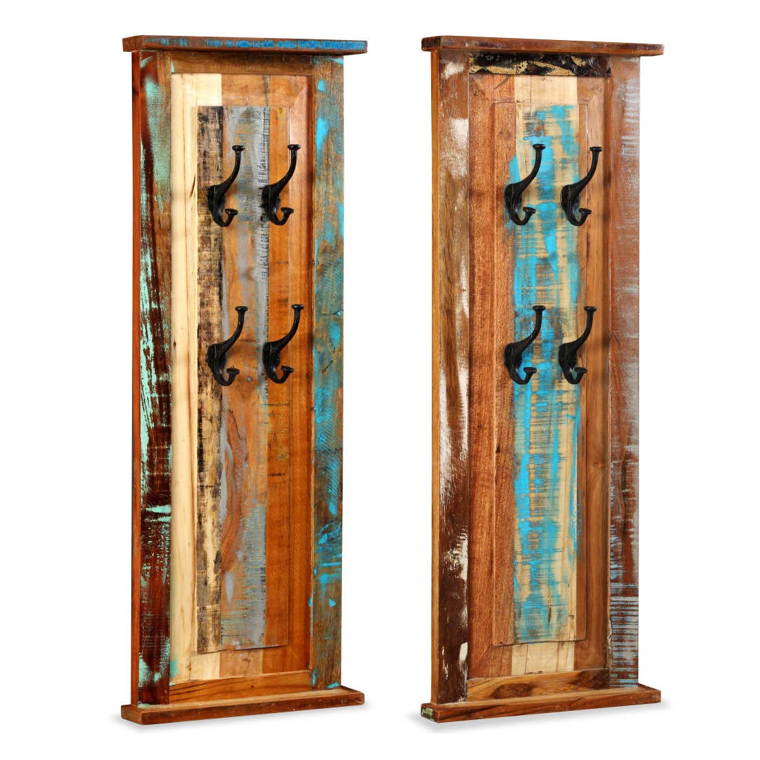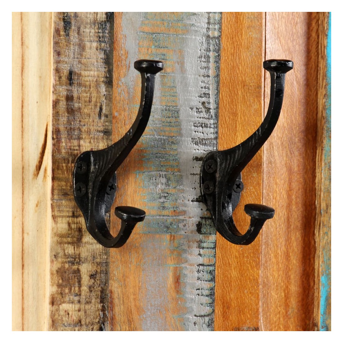 - Matériau : bois de récupération massif + crochets en fer forgé