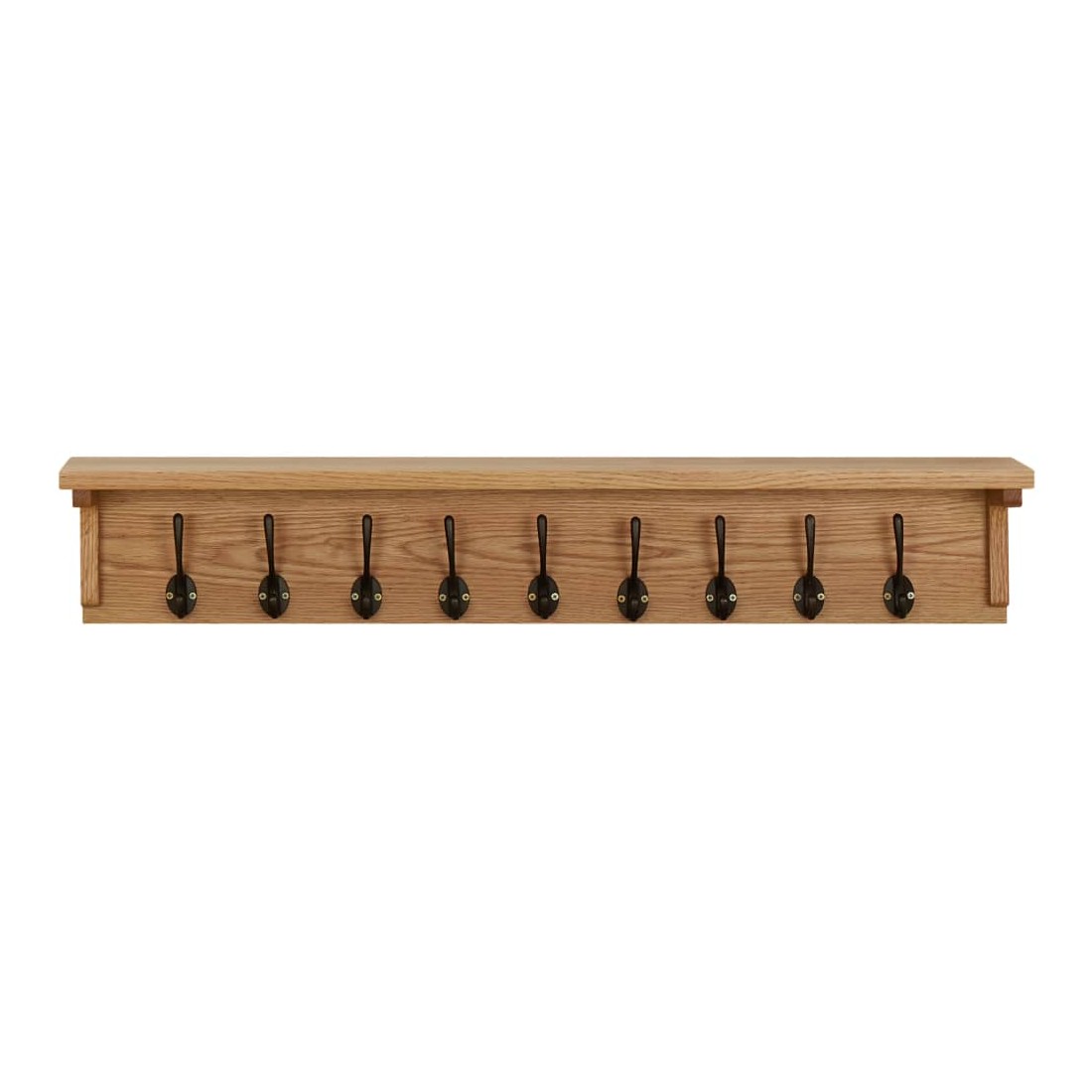Notre porte-manteau est conçu pour faire un supplément décoratif et pratique à votre pièce. Ce cintre en bois de chêne massif a une structure robuste et est extrêmement durable. Avec 9 patères, le support offre amplement d'espace pour accrocher vos manteaux, chapeaux, sacs, etc. Il convient à tout décor et transforme un mur vide ou une armoire terne en une fonctionnalité. La livraison comprend le porte-manteau et le matériel pour le montage au mur.
