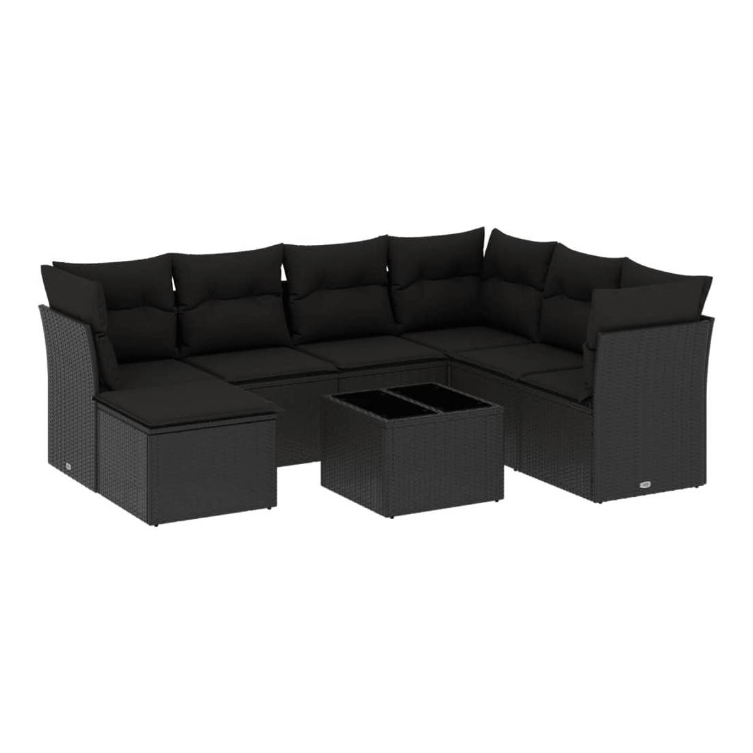 Salon de jardin 8 pcs avec coussins noir résine tressée