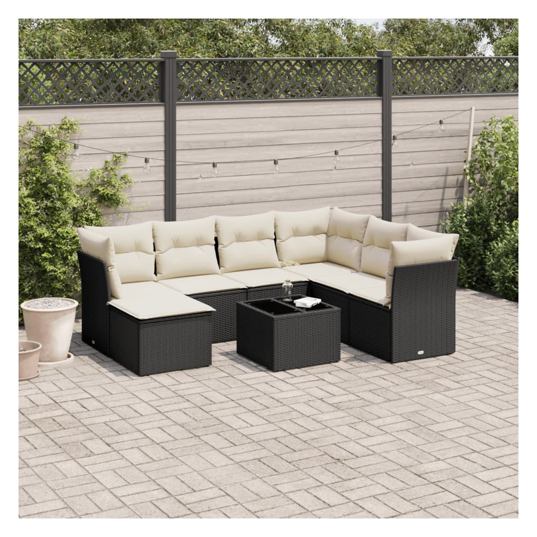 Salon de jardin 8 pcs avec coussins noir résine tressée