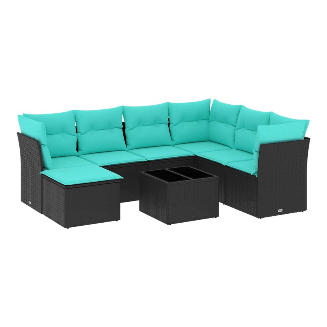Salon de jardin 8 pcs avec coussins noir résine tressée
