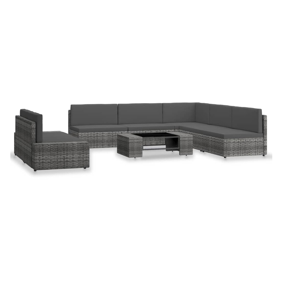 Ce salon de jardin en résine tressée est une combinaison parfaite de style et de fonctionnalité. Avec cela dans votre jardin, vous pouvez passer du temps relaxant et apaisant avec votre famille et vos amis. Grâce à la résine tressée résistante aux intempéries, le siège est facile à nettoyer, résistant à l'usure et adapté à un usage quotidien. Le canapé est doté d'un cadre en acier enduit de poudre robuste, qui est très durable. Les coussins d'assise et de dossier amovibles sont bien rembourrés, afin d'offrir un grand confort d'assise. Une table basse au design sobre peut contenir vos livres, magazines et du thé pour un moment apaisant et relaxant. De plus, grâce à sa conception modulaire, toutes les pièces peuvent être arrangées et personnalisées selon vos besoins. Cet ensemble de sièges sera sûrement le point de mire de votre jardin ou patio. Remarque : nous vous recommandons de couvrir l'ensemble pendant la pluie, la neige et le gel.