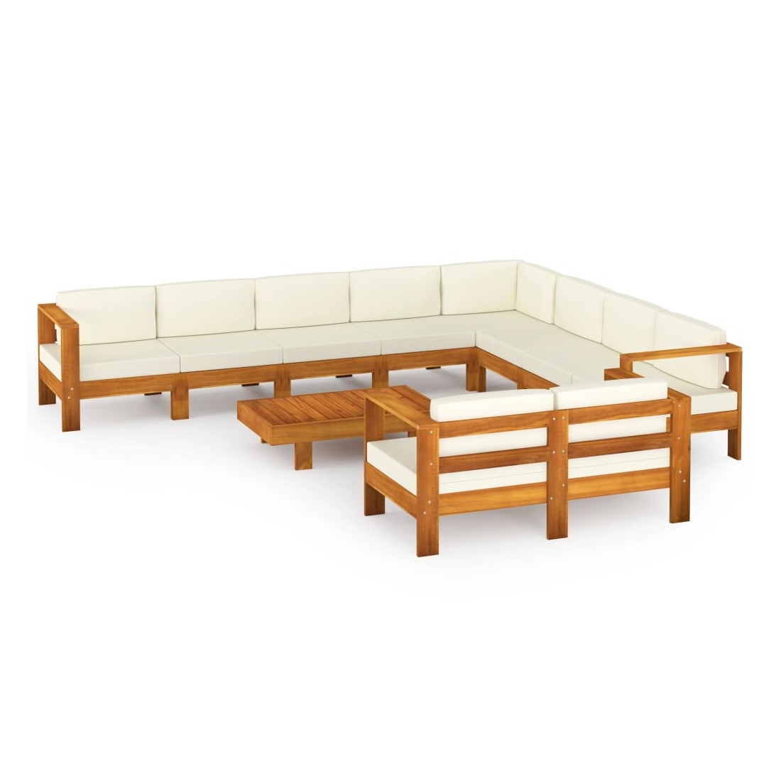 Salon de jardin 10 pièces avec coussins 100 x 60 cm Bois d'acacia