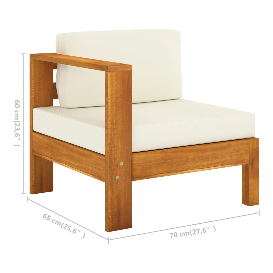 • Dimensions du canapé de milieu (avec 1 accoudoir) : 70 x 65 x 60 cm (l x P x H)