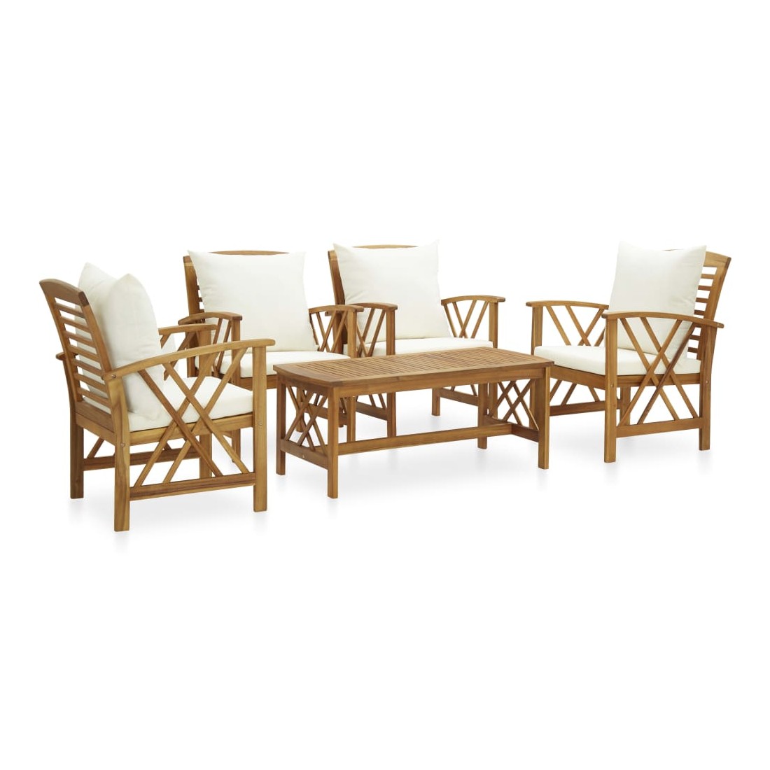 Salon de jardin 5 pcs avec coussins Bois d'acacia solide