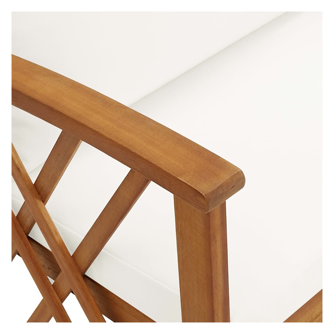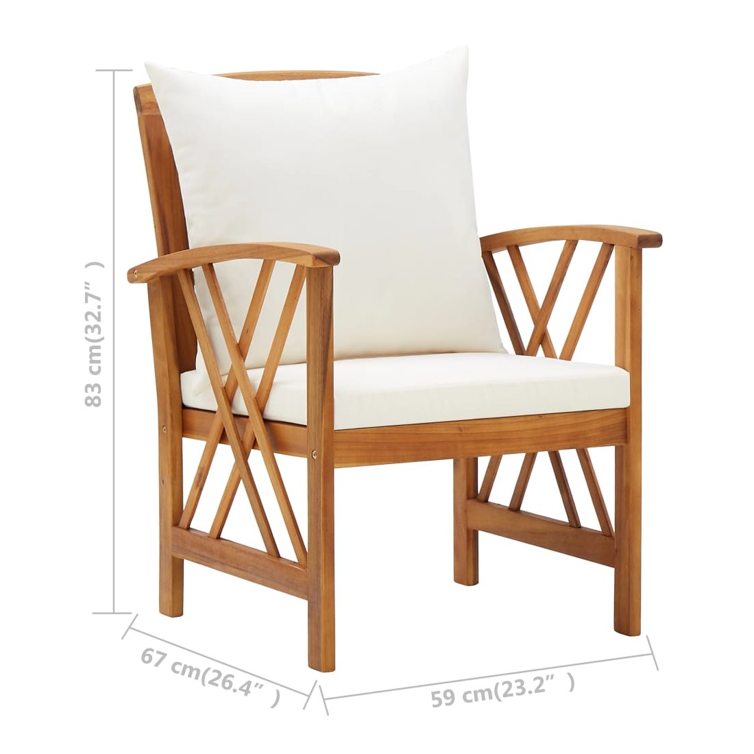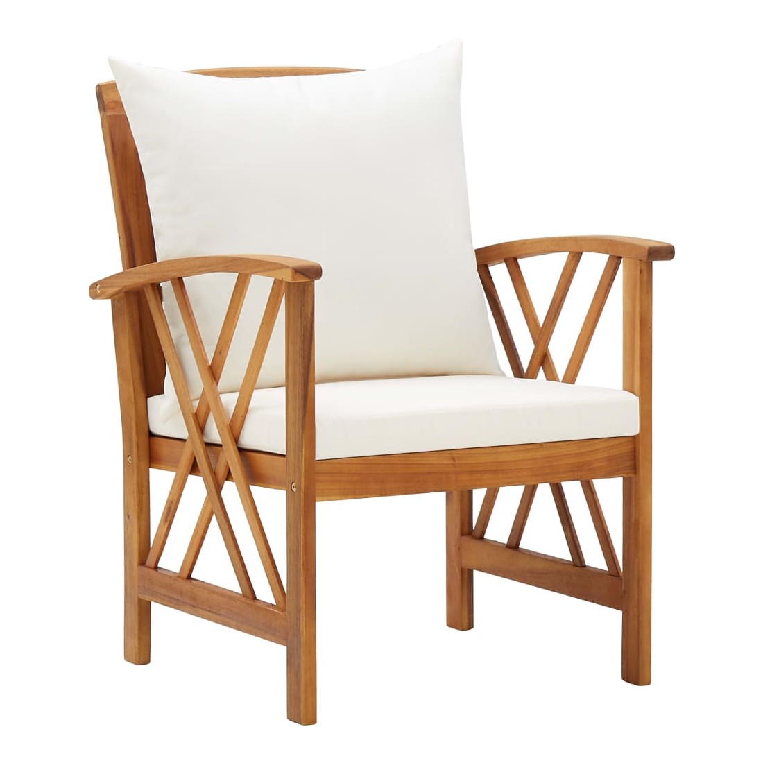 L'ensemble de salon de jardin en bois ajoute un look vintage et est spécialement conçu pour votre jardin, patio ou autre espace de vie extérieur ! Matériau durable : l’ensemble de meubles d’extérieur est construit en bois d'acacia massif avec une finition à l’huile, ce qui le rend stable et durable. Dessus de table à lattes : grâce au dessus de table en bois massif au design à lattes, la table basse vous offre de l’espace pour mettre vos collations, paniers de fruits, objets décoratifs, ainsi que d’autres essentiels. Expérience d’assise confortable : le dossier légèrement incurvé et les accoudoirs ajoutent au confort d'assise. Les coussins d'assise et de dossier épais rendent l'ensemble agréable à l'assise. Bon à savoir :Chaque article est unique, avec des variations de couleurs et de grains. La livraison est aléatoire, ce qui garantit l'exclusivité et l'individualité de votre produit.