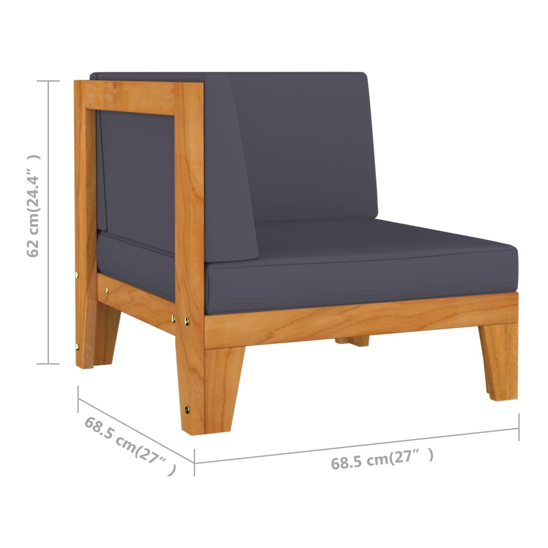- Dimensions du canapé d'angle : 68,5 x 68,5 x 62 cm (l x P x H)