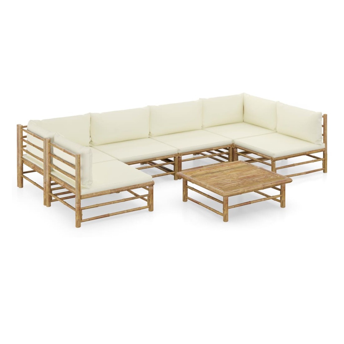 Salon de jardin 7 pcs avec coussins blanc crème bambou